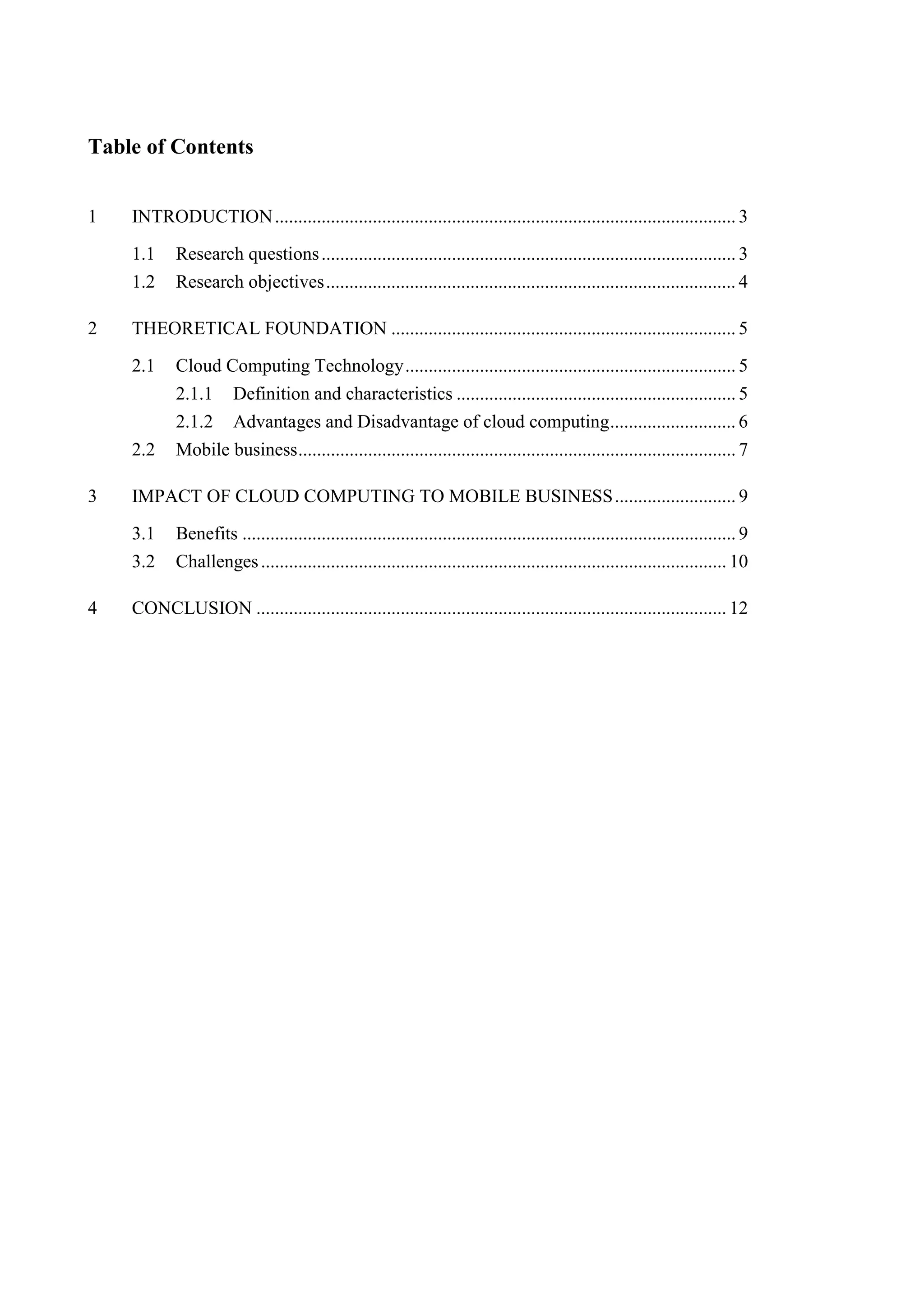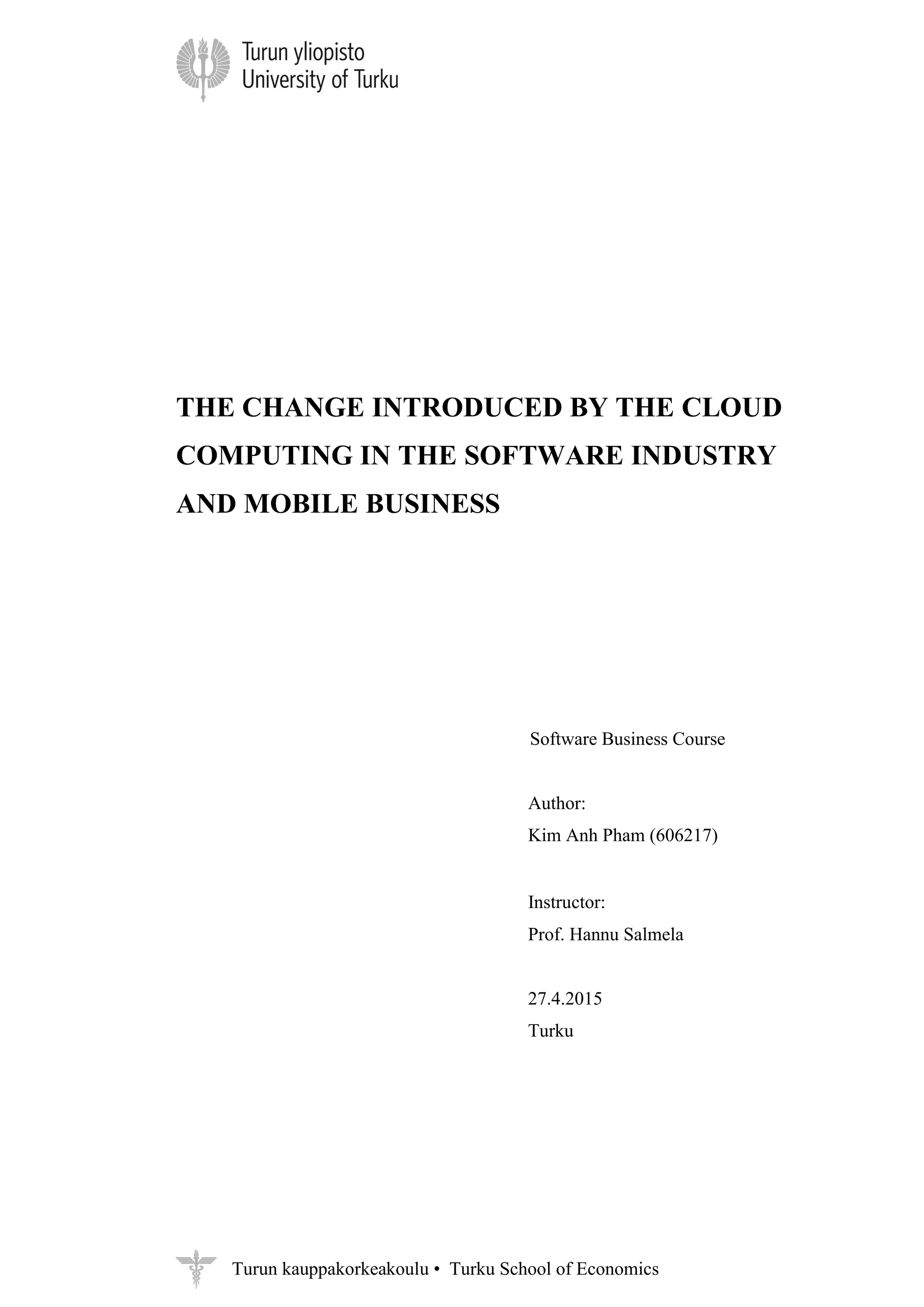 The document explores the impact of cloud computing on the software industry, particularly focusing on mobile business. It discusses the benefits and challenges of integrating cloud technology into mobile services, highlighting cost efficiency and enhanced customer experience, while also addressing issues like data security and network dependency. The analysis aims to assess how cloud computing transforms mobile business strategies and the ecosystem surrounding it.