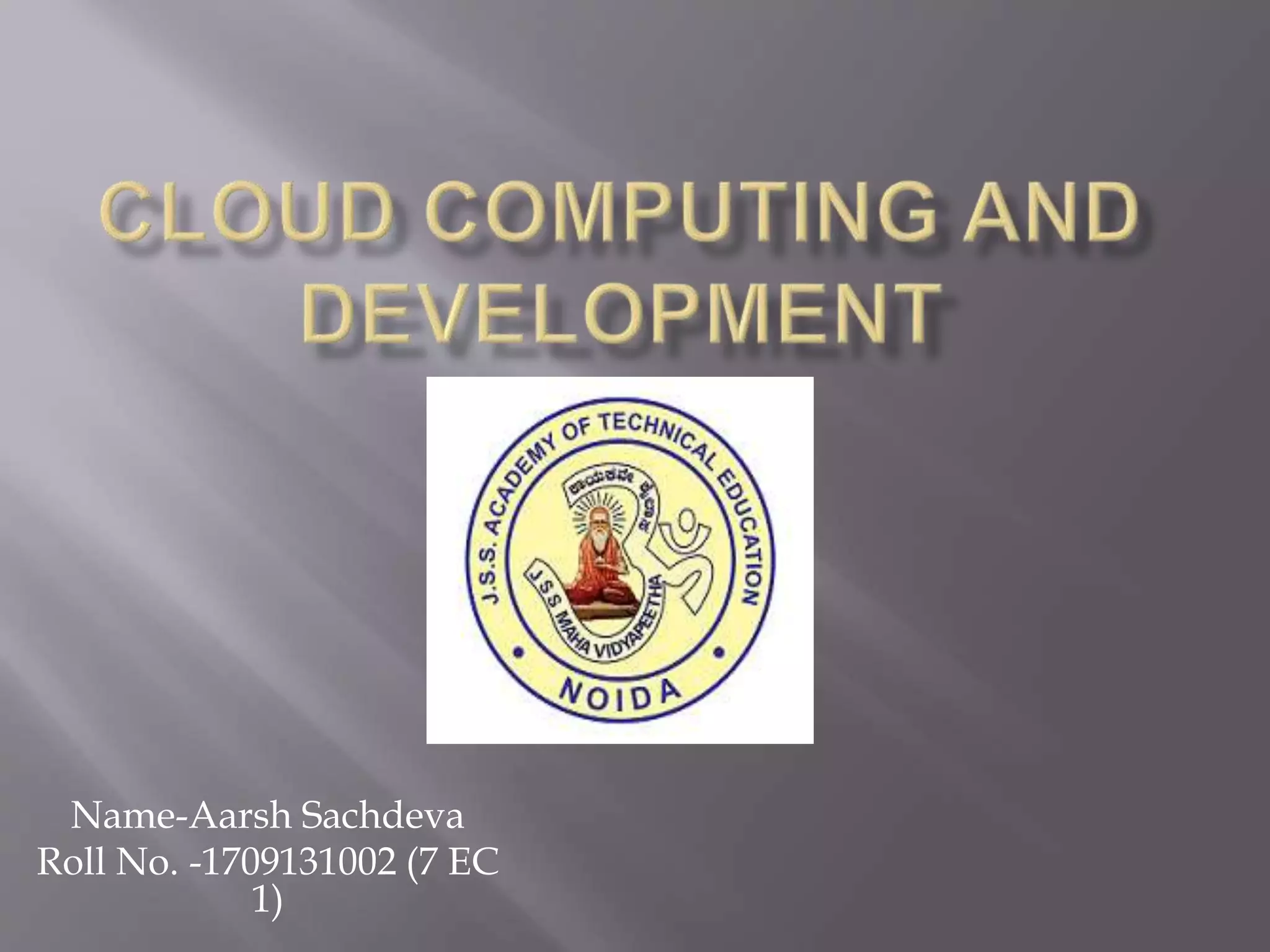 Cloud computing provides on-demand services over the internet on a pay-per-use basis. It offers benefits like greater storage, access from any device, lower costs, and less data corruption. While network-based computing dates to the 1960s, cloud computing emerged in 2006 when Google's CEO first used it. The main types of cloud services are SaaS, PaaS, and IaaS, which respectively provide software, platforms, and infrastructure as a service on a subscription basis at lower costs while improving scalability, access, security, and productivity.