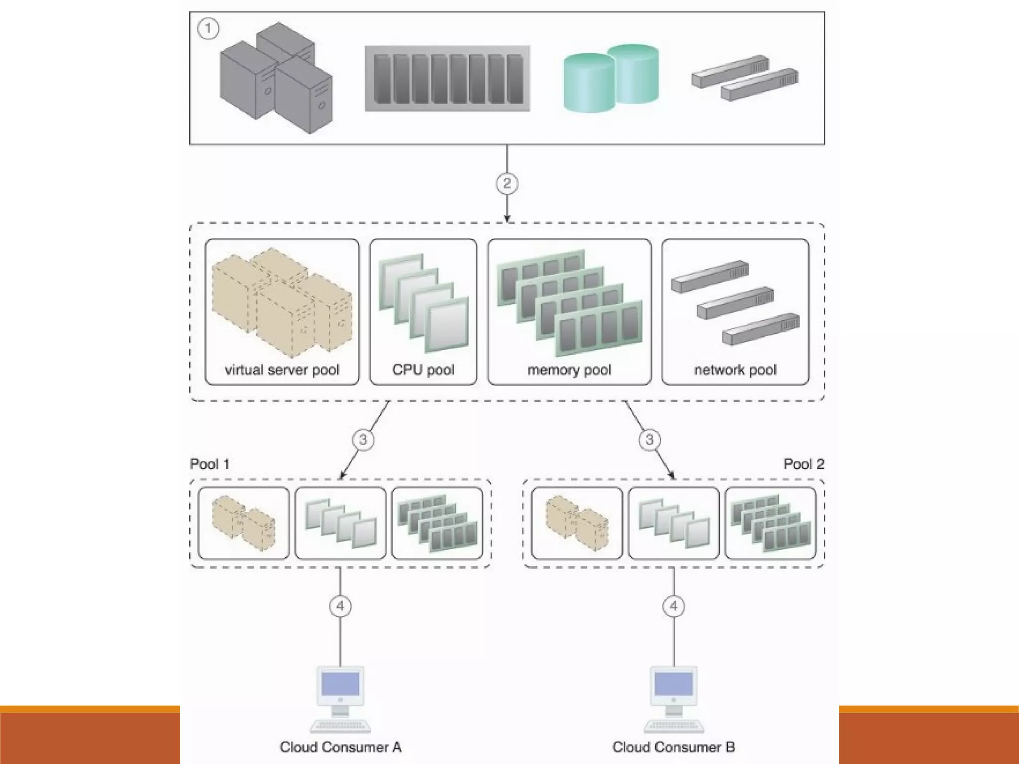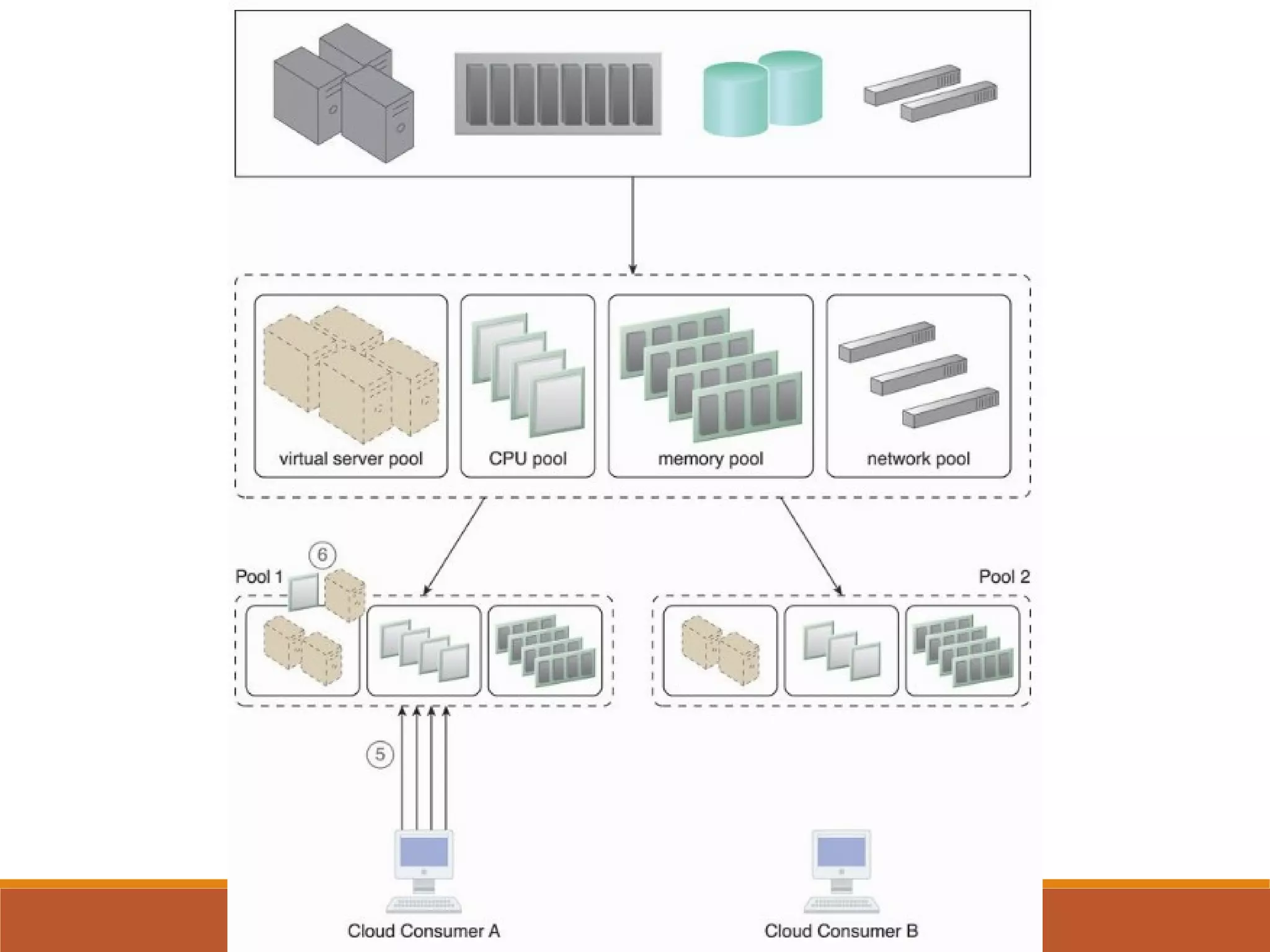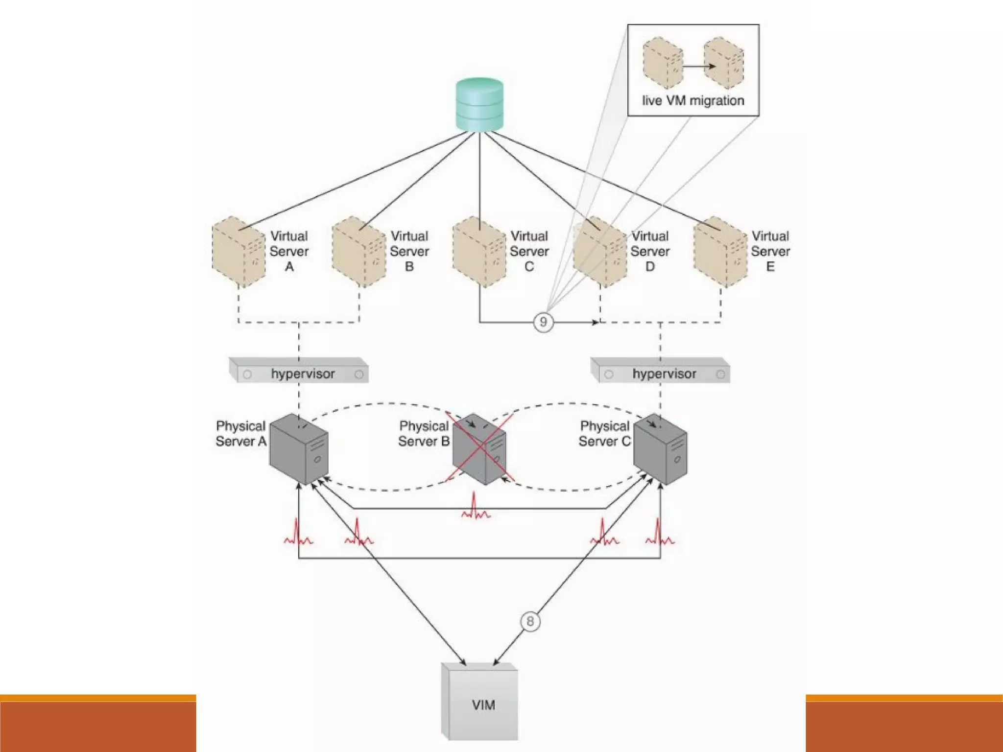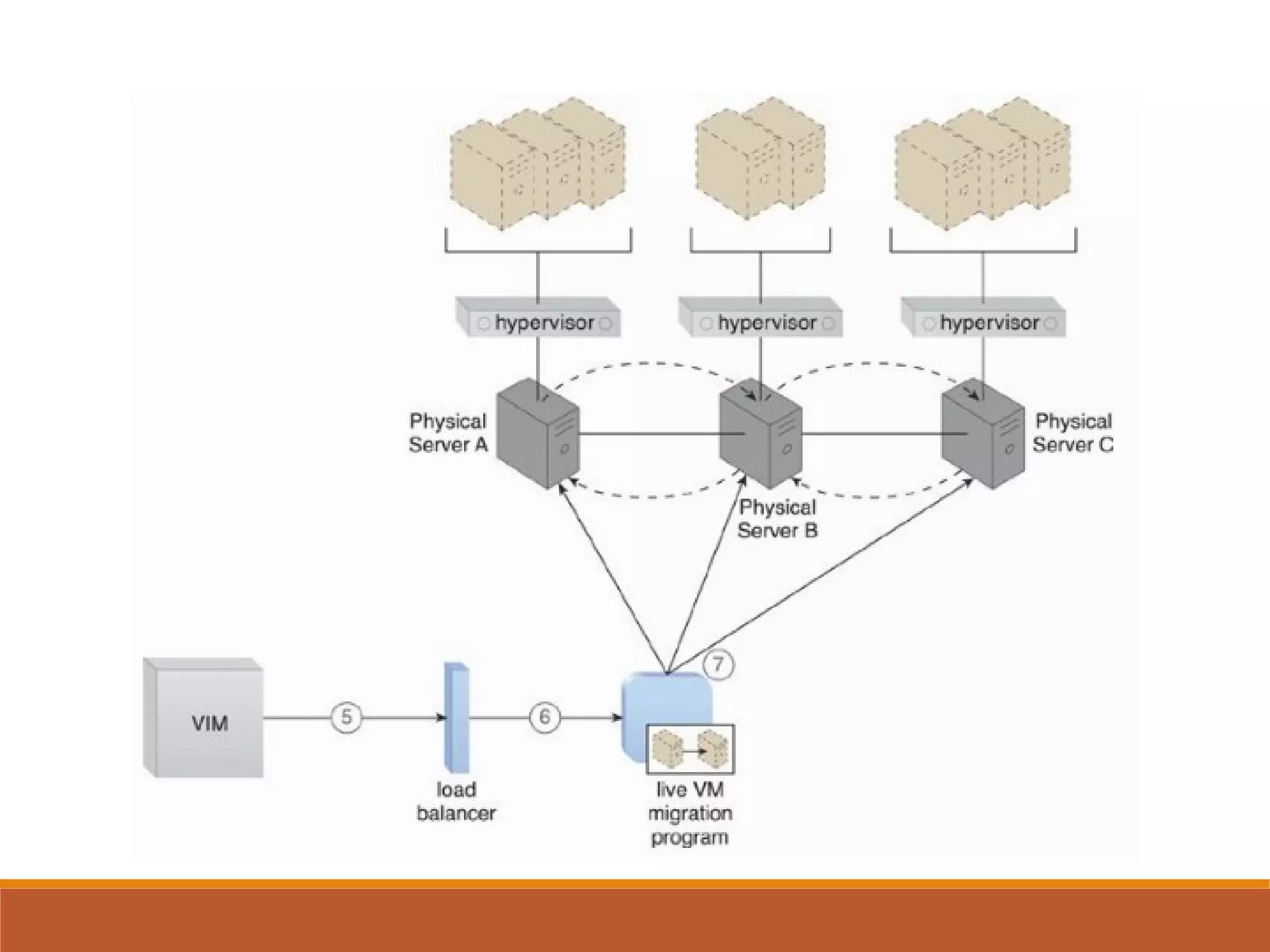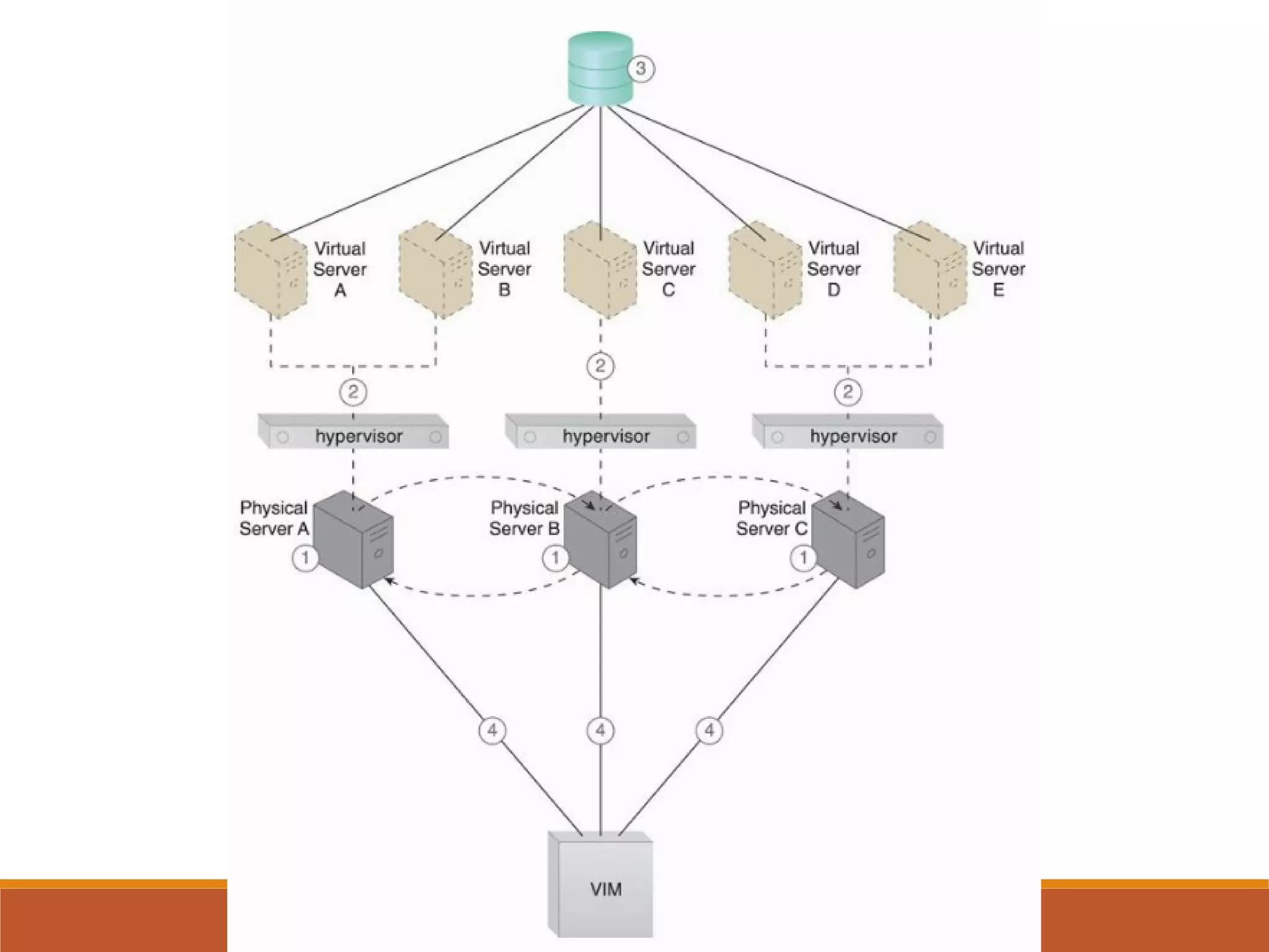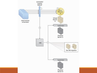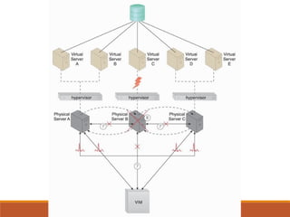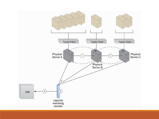 2) Load balancing distributes virtual server instances to prevent under/over-utilized servers.