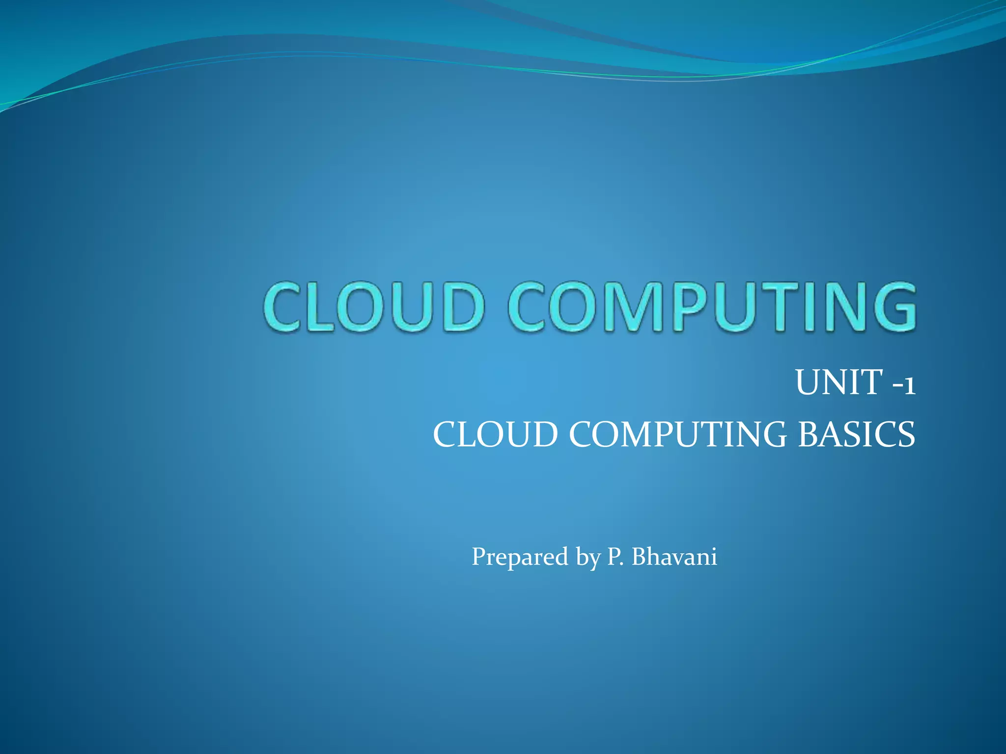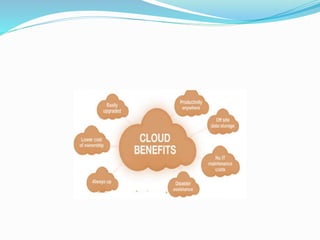 This document provides an overview of cloud computing basics. It defines cloud computing as delivering computational resources like software and hardware as a service over the internet. Key aspects covered include the origin and evolution of cloud computing from the 1960s to present day, cloud components like clients, data centers and distributed servers, essential cloud characteristics, and architectural influences on cloud computing including high performance computing, utility computing, and autonomic computing. It also discusses service consolidation in computing.