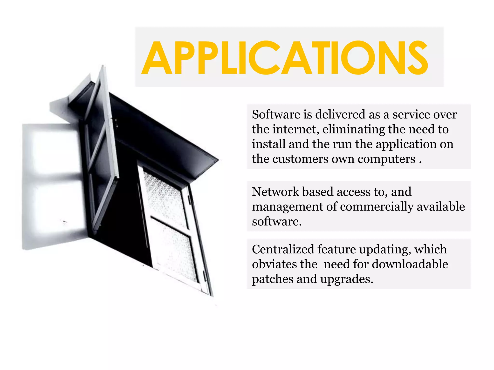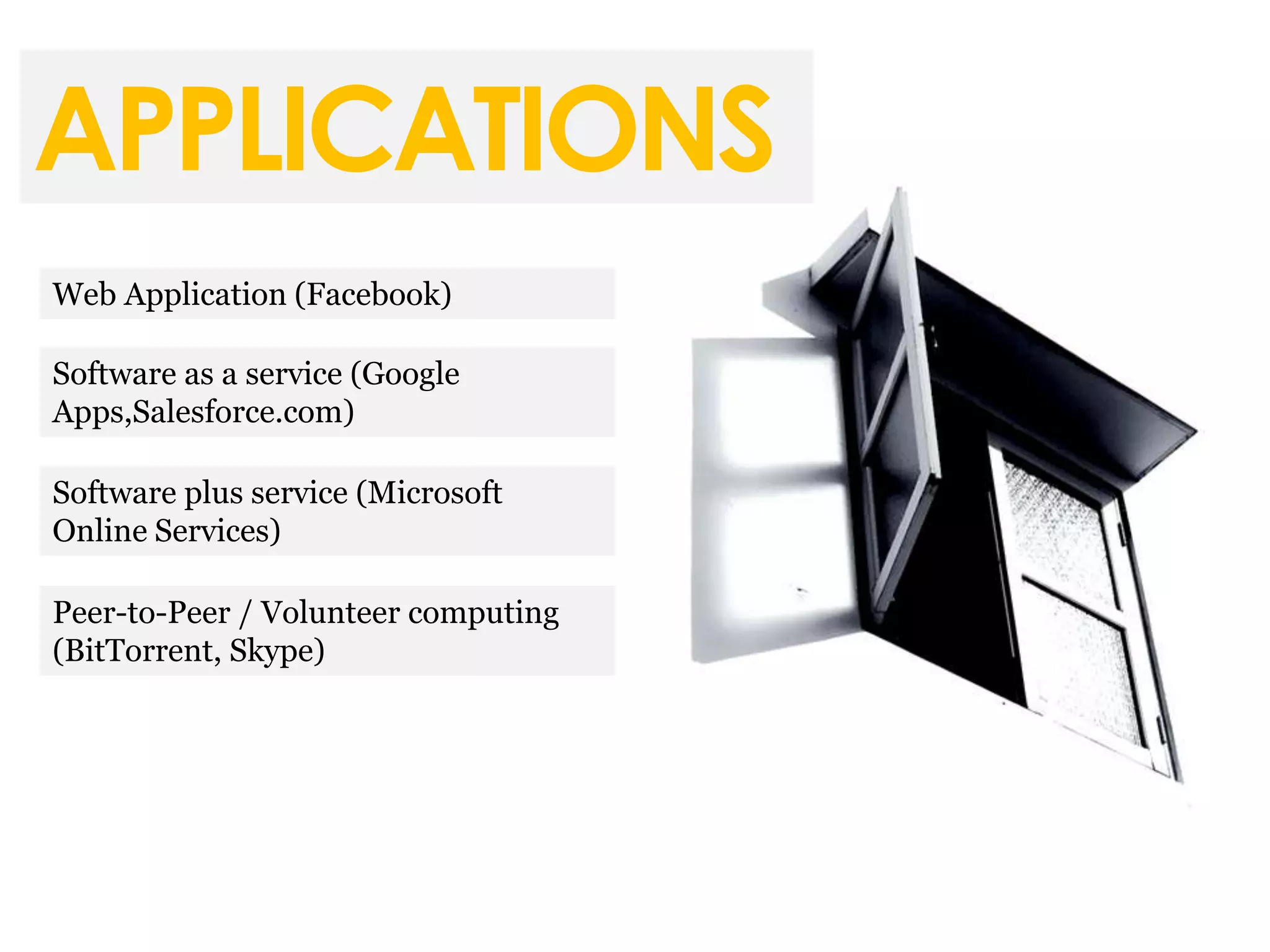 Cloud computing provides on-demand access to shared computing resources like networks, servers, storage, applications and services available over the internet. It allows users and businesses to access these resources as needed without having to manage physical infrastructure themselves. The average internet user was one of the early major adopters of cloud computing without realizing it through services like email, photo storage, and social media. Cloud computing is here to stay due to benefits like agility, scalability, lower costs and simplifying software deployment for businesses of all sizes.