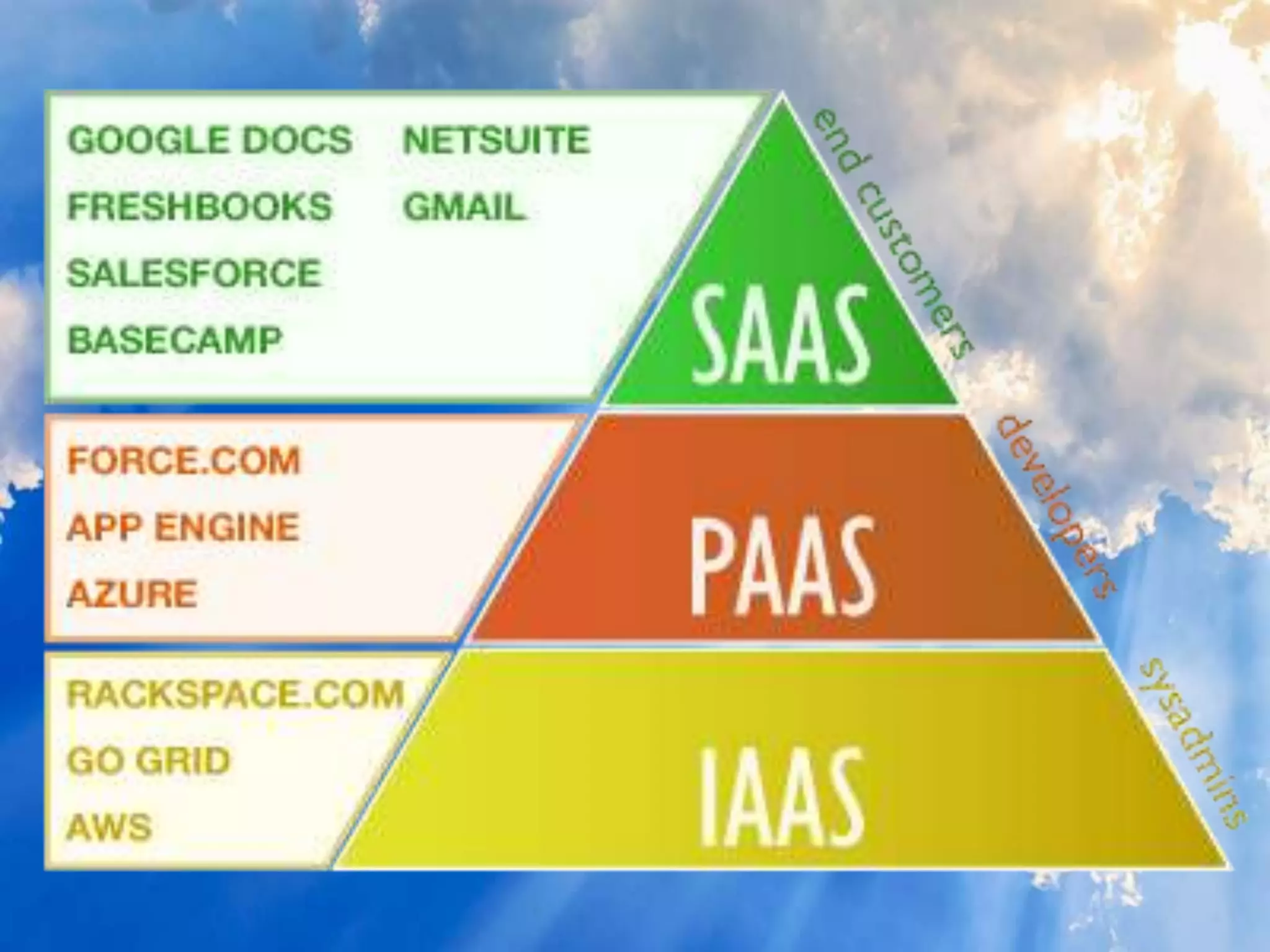 The document discusses cloud computing, which uses central remote servers and the internet to maintain data and applications. It has three main components: client computers that users interact with, datacenters containing servers where applications are hosted, and distributed servers that act as if they are locally connected. Cloud computing provides infrastructure, platform and software as services and examples of cloud services include social media sites, email, and search engines. It offers benefits like scalability, agility and on-demand access, but also risks such as reliance on the internet and security issues.