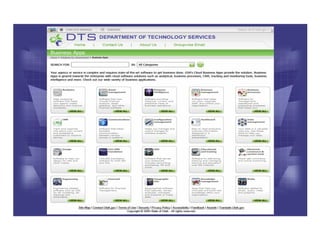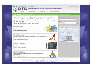 The document discusses cloud computing and the State of Utah's plans to implement a private cloud. It describes the different types of cloud models and outlines Utah's progress in virtualization and consolidation of data centers. The vision is for a hybrid cloud that leverages internally-hosted and public cloud services to provide on-demand, elastic, scalable computing capabilities to users.