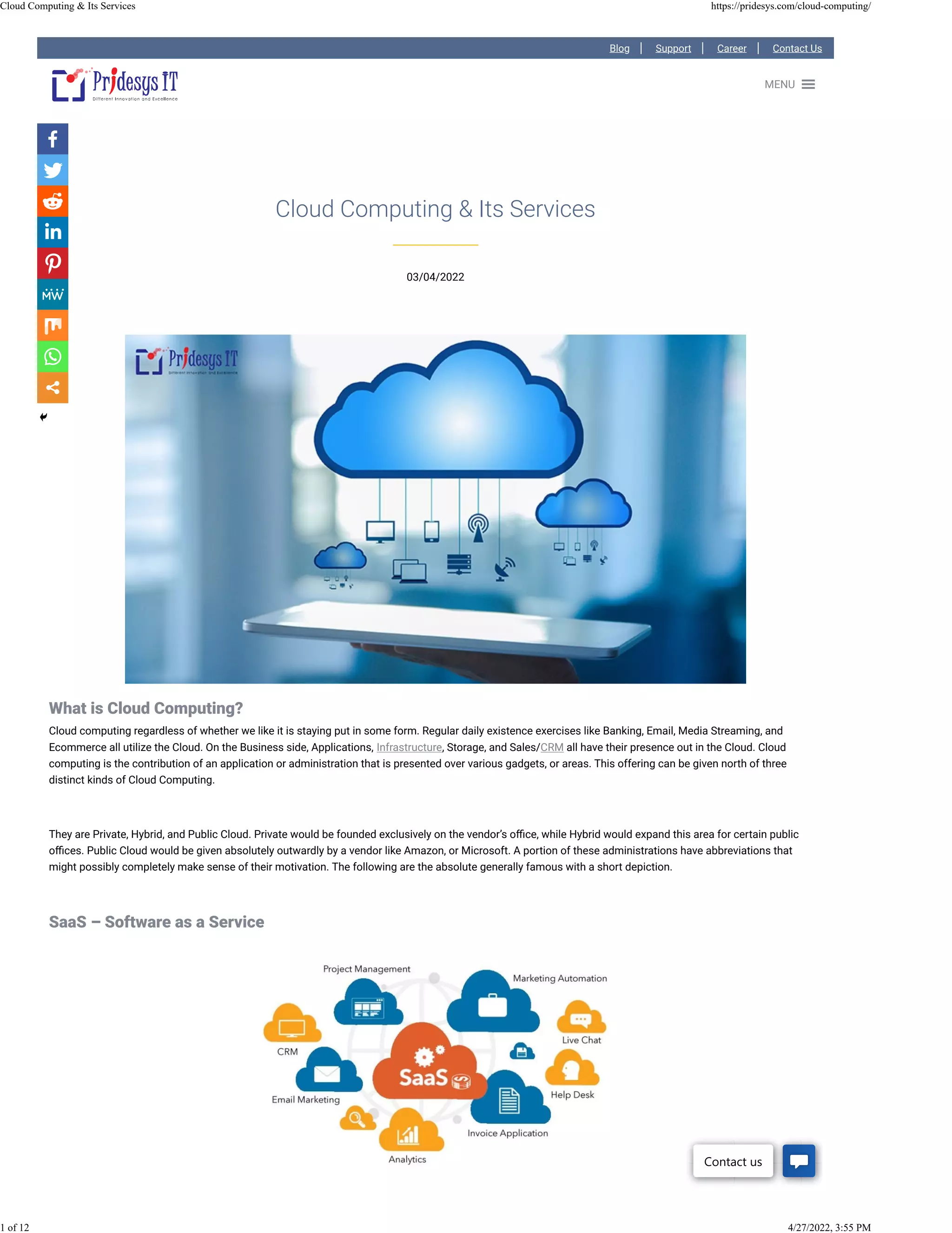 The document discusses various cloud computing services including SaaS, PaaS, IaaS, and BaaS. It provides descriptions of each service, how they work, and examples. SaaS refers to software offered as a service over the internet, such as webmail. PaaS allows users to develop and run applications without managing infrastructure. IaaS provides virtual computing resources over the internet. BaaS offers data backup and recovery services that are managed remotely.