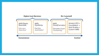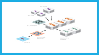 The document discusses strategies for scaling LAMP applications on cloud computing platforms like AWS. It recommends: