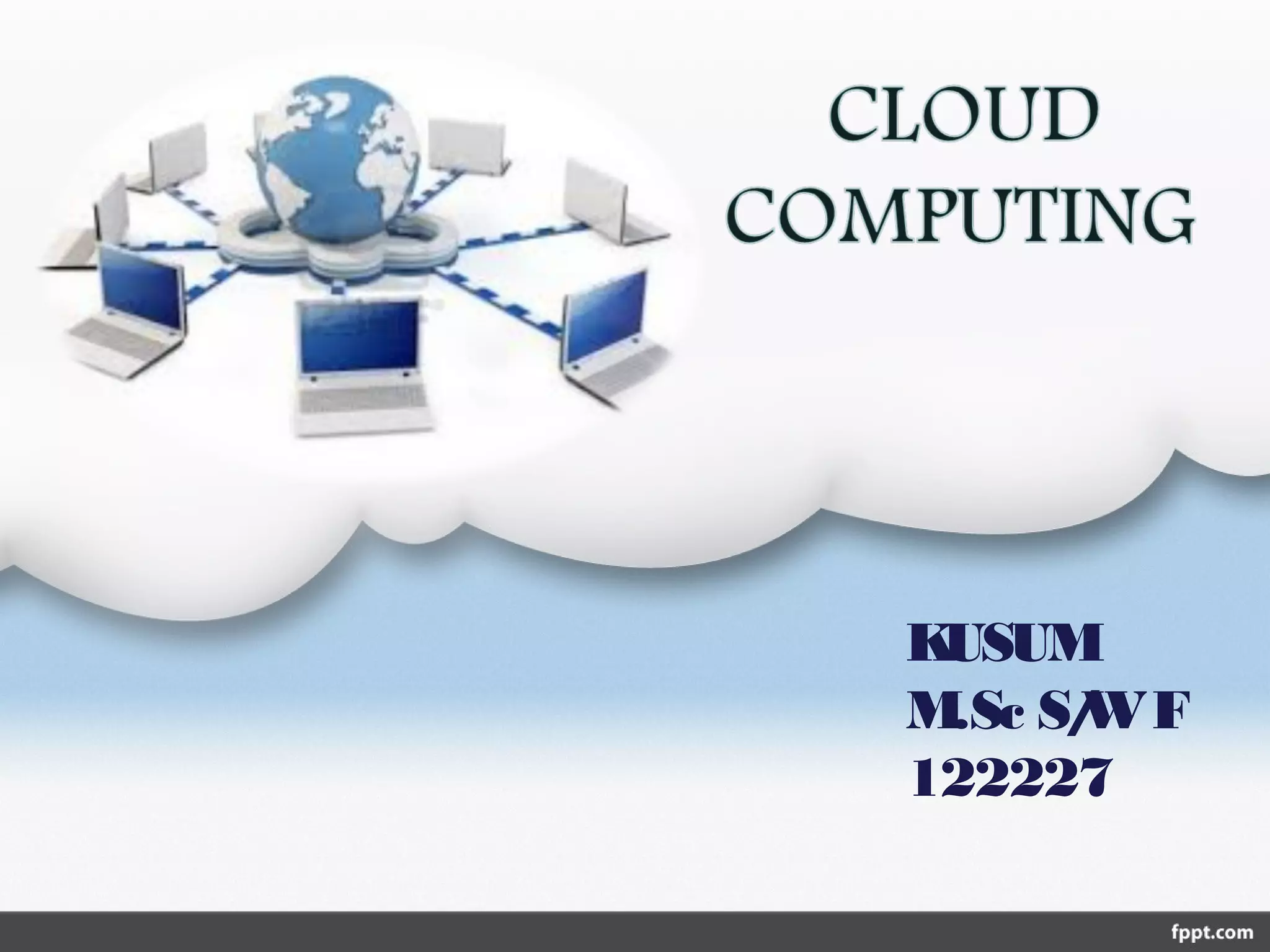 This document discusses cloud computing, including its definition, types of services, service models, types of clouds, service providers, examples of cloud storage, advantages, drawbacks, and conclusion. Cloud computing delivers hosted services over the Internet and involves users, applications, infrastructure, and platforms. The main types of cloud services are Infrastructure as a Service (IaaS), Platform as a Service (PaaS), and Software as a Service (SaaS). Cloud computing offers advantages like reduced costs, infinite storage, and location independence but also security issues, dependency, and limited control. In conclusion, cloud computing remains strong despite drawbacks and has great potential for the future.