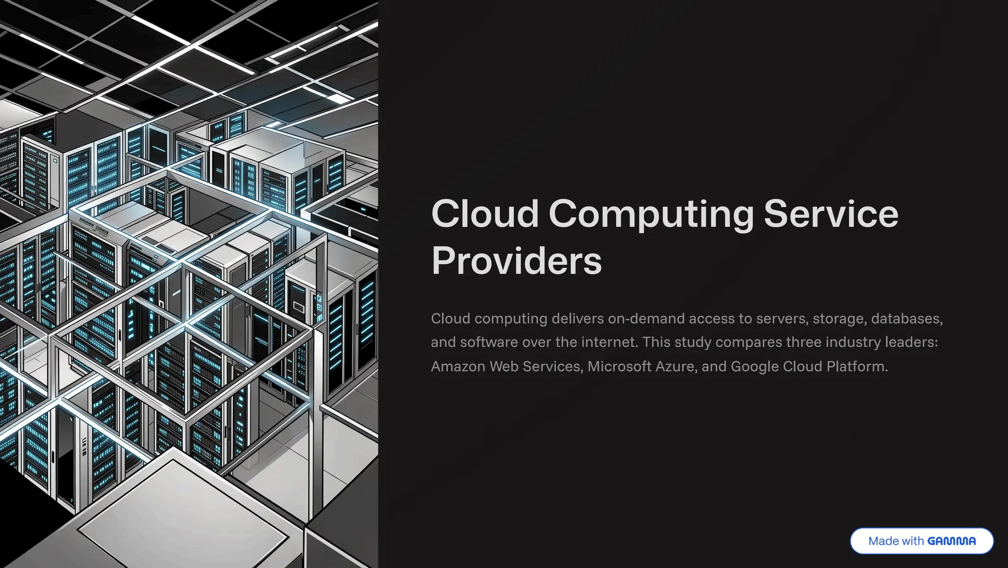 Amazon Web Services, Microsoft Azure, and Google Cloud Platform.