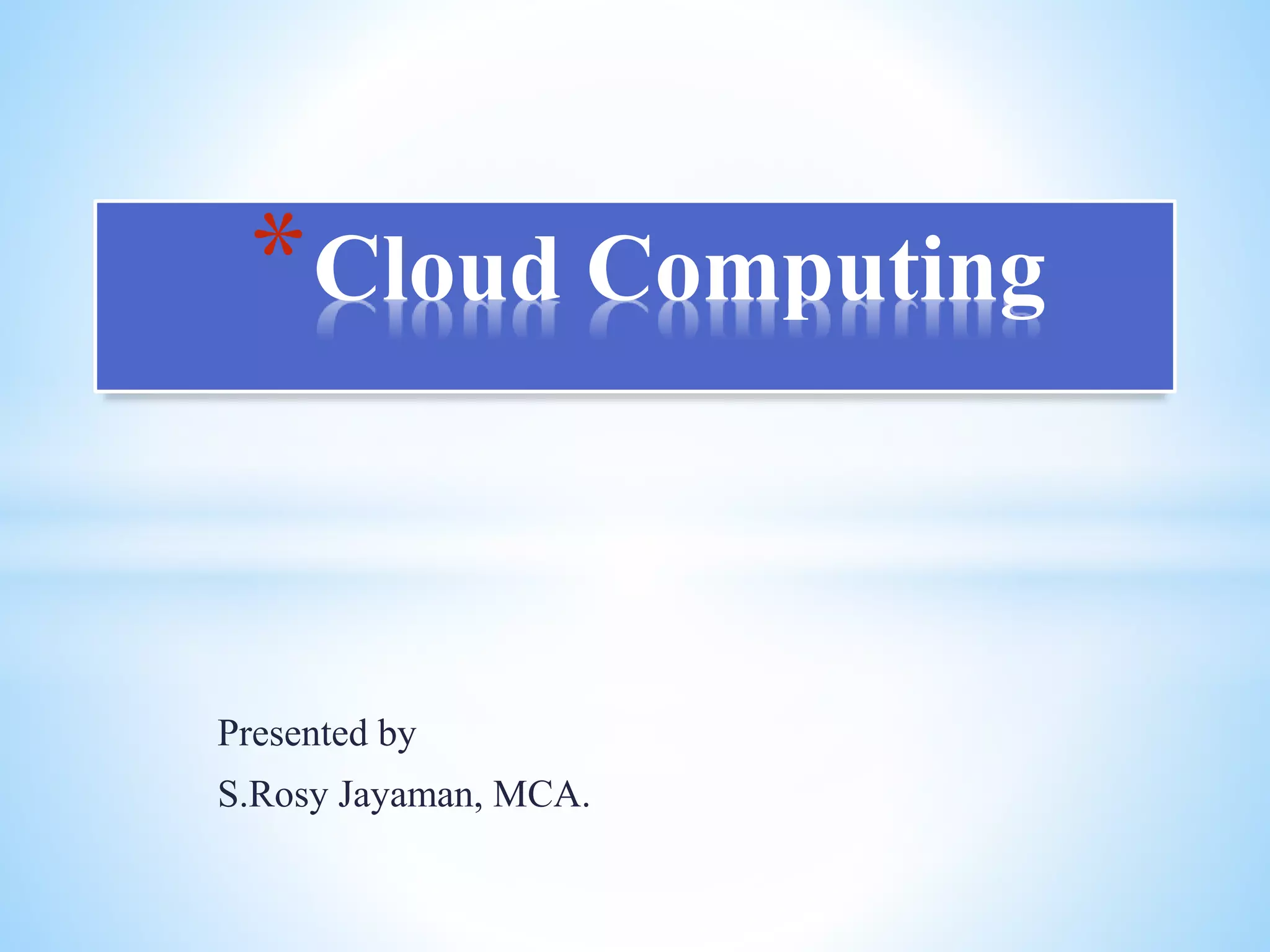 - The key characteristics of cloud computing like scalability, reliability, location independence.