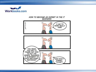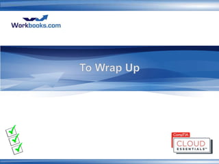 This document discusses growing the IT workforce through cloud computing certification. It begins with CompTIA, a non-profit trade association that provides vendor-neutral IT certifications. It then discusses CompTIA's Cloud Essentials certification program which aims to address the expanding global IT workforce gap and bridge IT careers from beginner to expert. The certification program covers cloud computing concepts and is intended to help both employers and professionals. The presentation concludes by encouraging IT professionals to get certified now to build cloud competencies and take advantage of opportunities in the growing cloud job market.