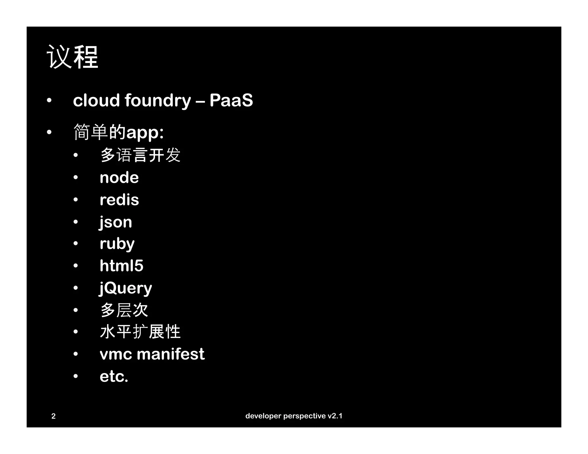 The document discusses Cloud Foundry, an open source Platform as a Service (PaaS). It provides the following key points:
