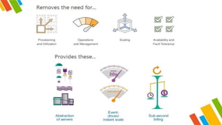 This document provides an overview of cloud computing and Google Cloud Platform (GCP). It defines cloud computing, describes the key facets of cloud including ubiquity, scalability, and intelligence. It introduces several GCP services for computing, databases, data analytics, networking, and security. It discusses the shared responsibility model and recommends learning computer science fundamentals before focusing on specific cloud providers. Training resources for GCP certifications are also listed.
