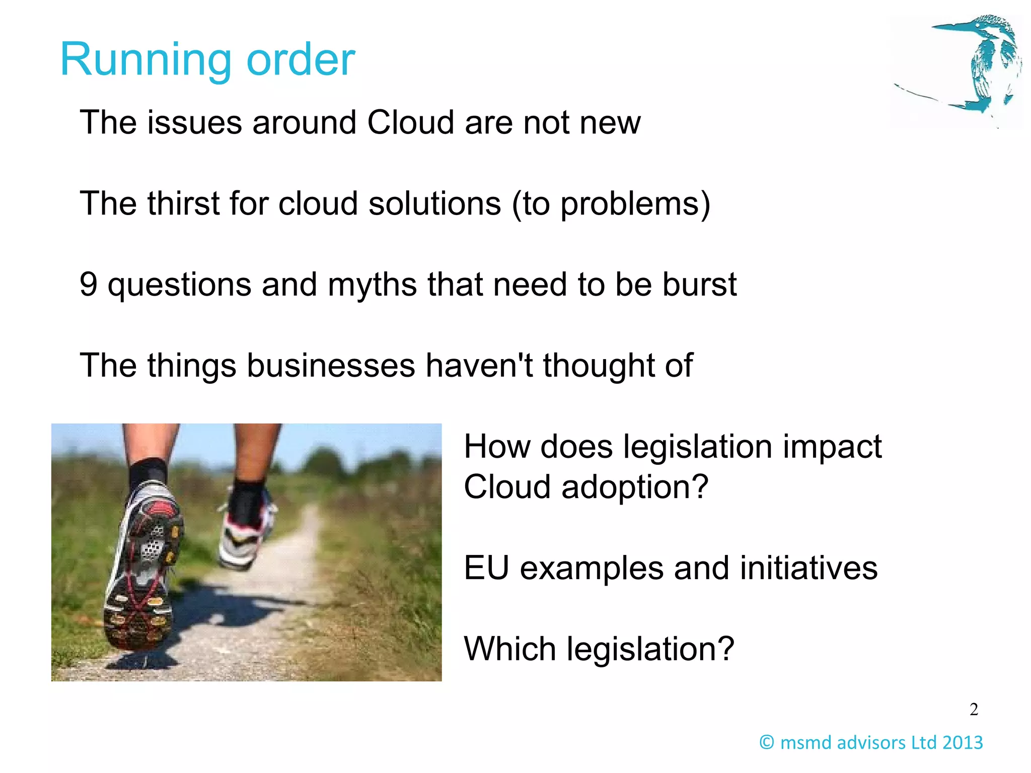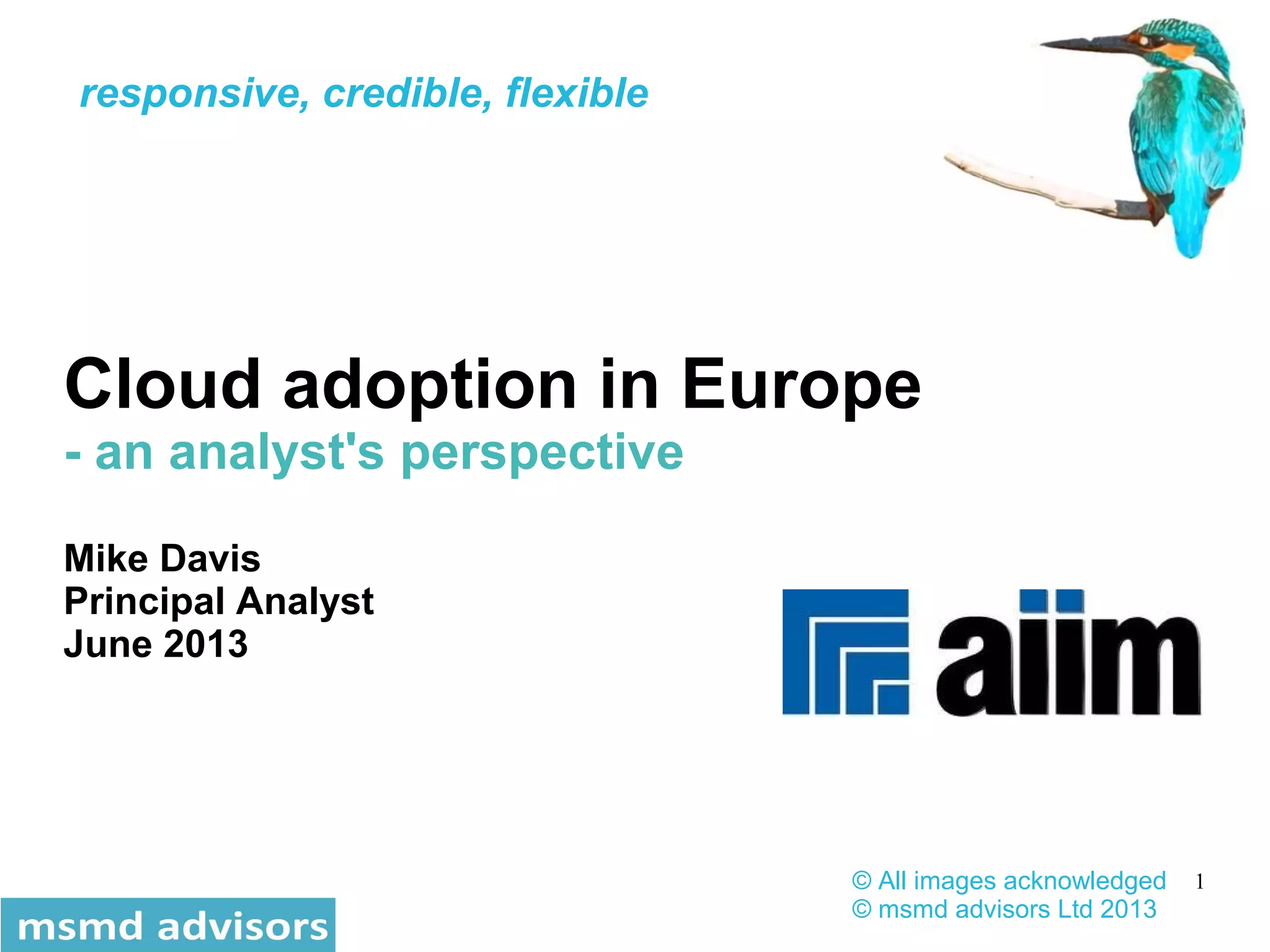 The document discusses issues and myths around cloud adoption in Europe from an analyst's perspective. Some key benefits of cloud adoption include rapid updates without downtime, flexibility and scalability without large infrastructure investments, and allowing IT teams to focus on solutions rather than maintenance. However, some common concerns raised by European CIOs include lack of control over data, security if the provider is hacked, trusting an external entity with data, cost guarantees, and restrictions on storing personal data outside one's country. The document aims to address each of these concerns and myths in turn.