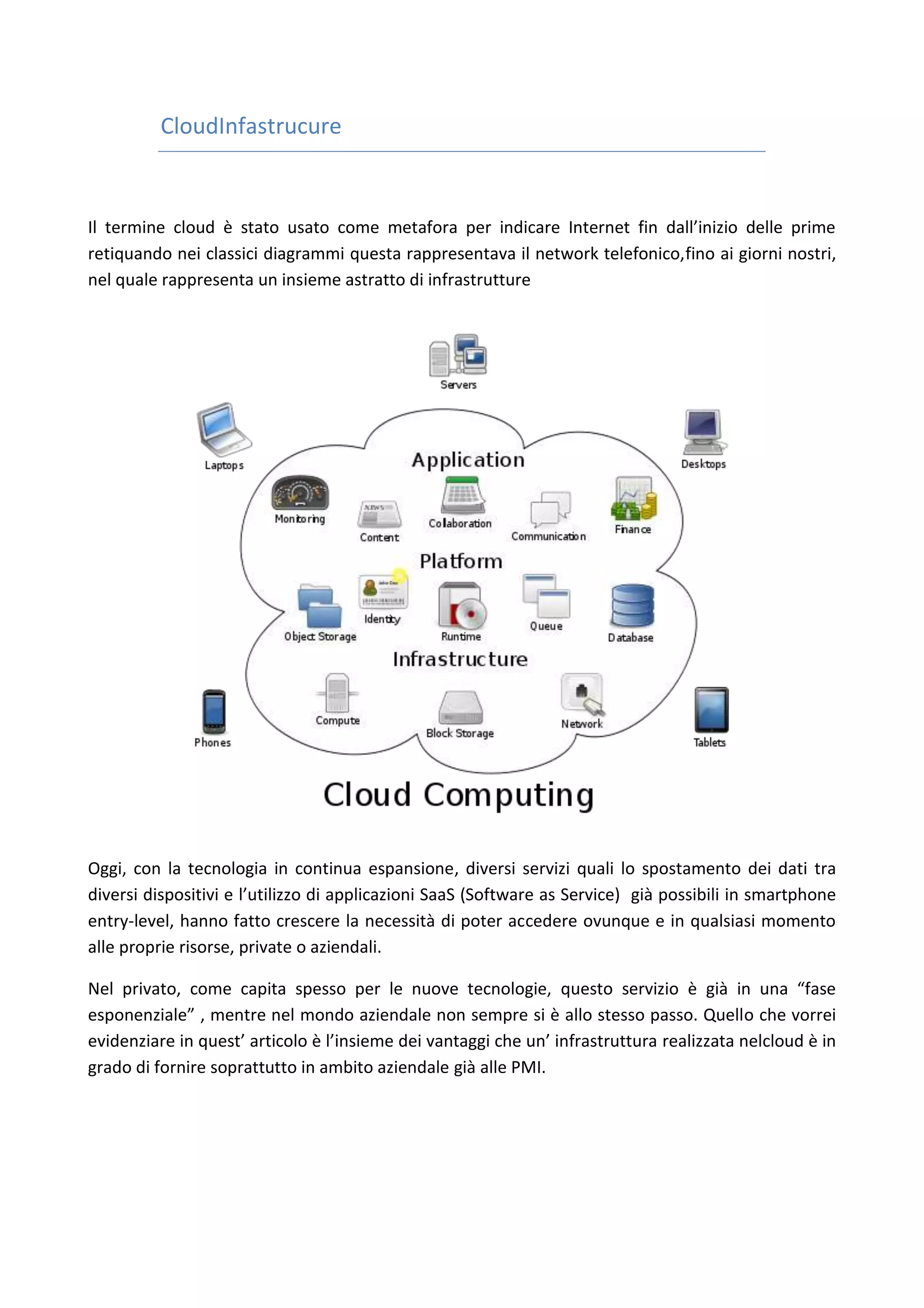 Il documento esplora i vantaggi delle infrastrutture cloud, evidenziando l'importanza di servizi come IaaS per le PMI. Si discute la superiorità del cloud rispetto ai sistemi tradizionali in termini di scalabilità, flessibilità e costi operativi. Inoltre, si considerano diversi approcci, tra cui on-premise e ibrido, per la gestione delle risorse aziendali, con particolare attenzione alla sicurezza dei dati.