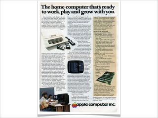 The document provides a brief history of electricity and computing from Thomas Edison's electric lamp in the late 19th century to modern cloud computing and smart phones. Key developments discussed include Nikola Tesla's contributions, the construction of hydroelectric dams like at Niagara Falls, early computers like the Control Data 3600 and Apple II, the rise of personal computers and netbooks, and the growing role of cloud services and wireless connectivity provided by smartphones. The document ends by thanking the reader and providing links to learn more.