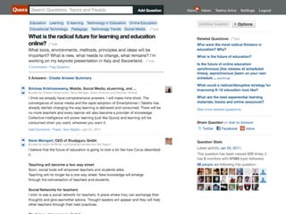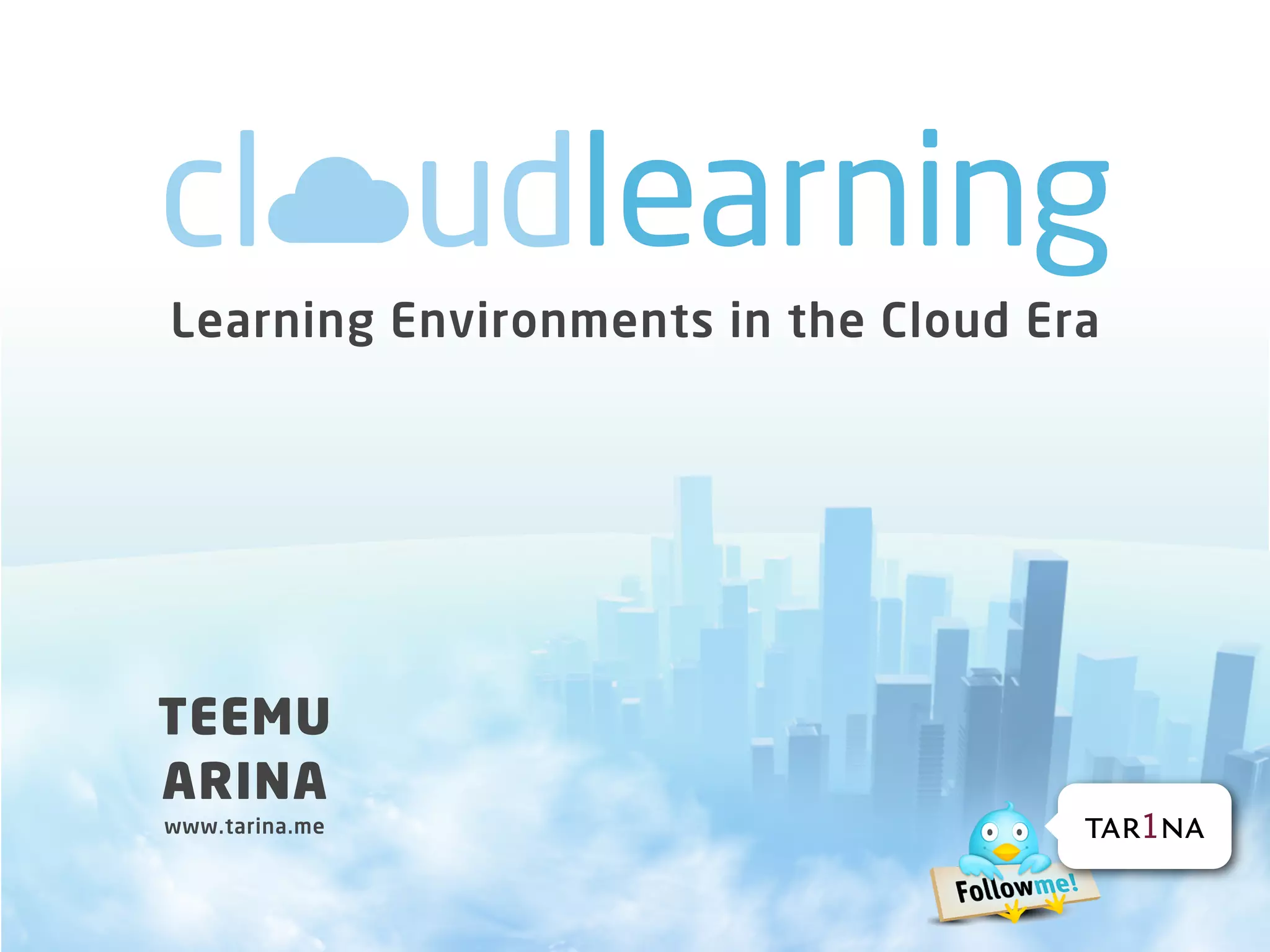 The document discusses the transition to cloud-based learning environments. It notes that from 1980s to present, technologies transitioned from networks to the world wide web to web 2.0 with user-generated content. Currently, cloud computing enables widespread adoption of cloud-based services through application stores and distributed platforms. This allows for personal learning environments on smart interfaces and maximizing external capabilities. Context-based communication practices empower responsive and adaptive interactions in comparison to predictive models. Learning is now connected through interactions, sharing, and connections on demand through the cloud.