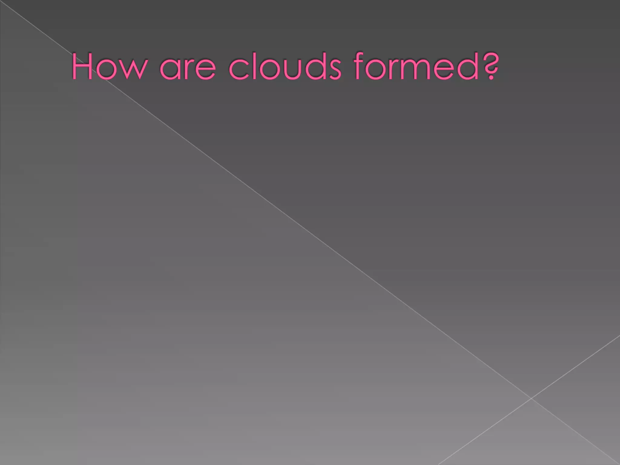This document describes an experiment to create a cloud in a jar. Students cover the bottom of a jar with water and place a lit match inside under a rubber glove-covered opening. When the match is blown out, the change in pressure and temperature causes water vapor in the air to condense onto smoke particles from the match, forming a small cloud inside the jar. The document then discusses different types of clouds like stratus, altocumulus, cirrus, cumulus and cumulonimbus clouds. It concludes by reflecting on how God created the diversity of clouds and everything else in nature.