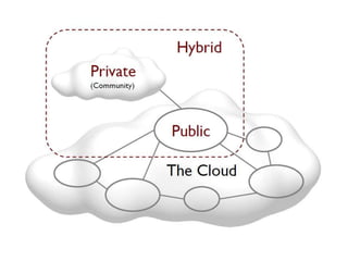 The document discusses the role of cloud computing in transforming local government, emphasizing the need for adaptability, efficiency, and security within public sector IT. It highlights the potential benefits and challenges of cloud technology, such as scalability and security, while advocating for open data and standards to improve transparency and service delivery. Additionally, it explores the importance of crowdsourcing and open-source solutions for enhancing collaboration and innovation in government services.