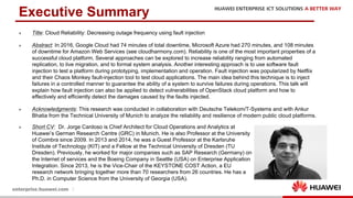 The document discusses the 9th International Workshop on Software Engineering for Resilient Systems held in Geneva, highlighting Dr. Jorge Cardoso's presentation on using fault injection to enhance cloud reliability, as demonstrated with OpenStack. It emphasizes the significance of toolsets like Netflix's Chaos Monkey for testing cloud applications and proposes a method to efficiently diagnose failures by reducing unit tests and establishing service relationships. The approach aims to diagnose failures using only 4-5% of the original unit tests, aligning with operational reliability requirements.