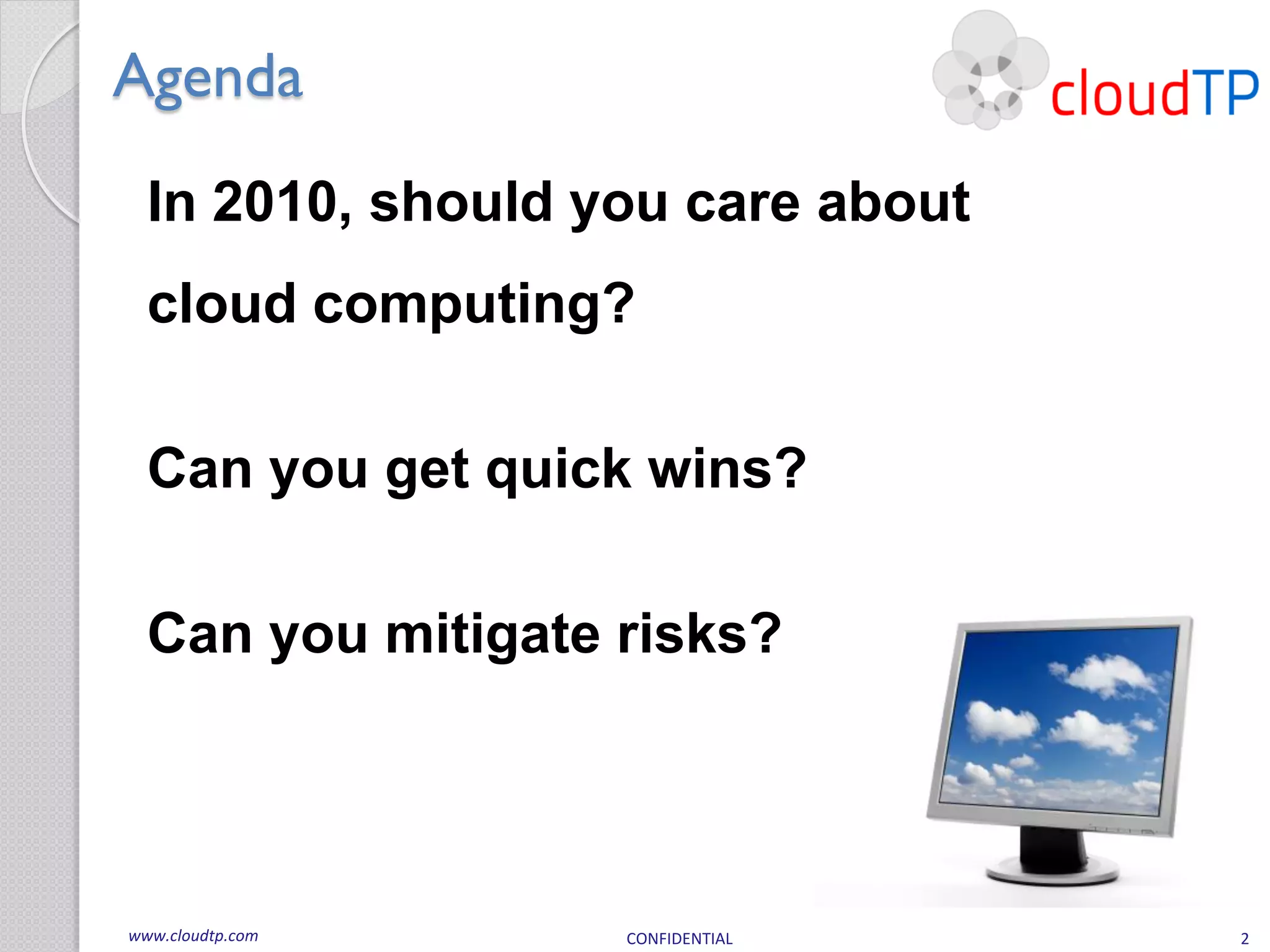 The document discusses whether companies should adopt cloud computing in 2010 and how to address risks. It provides examples of companies successfully using cloud computing. The key points are: