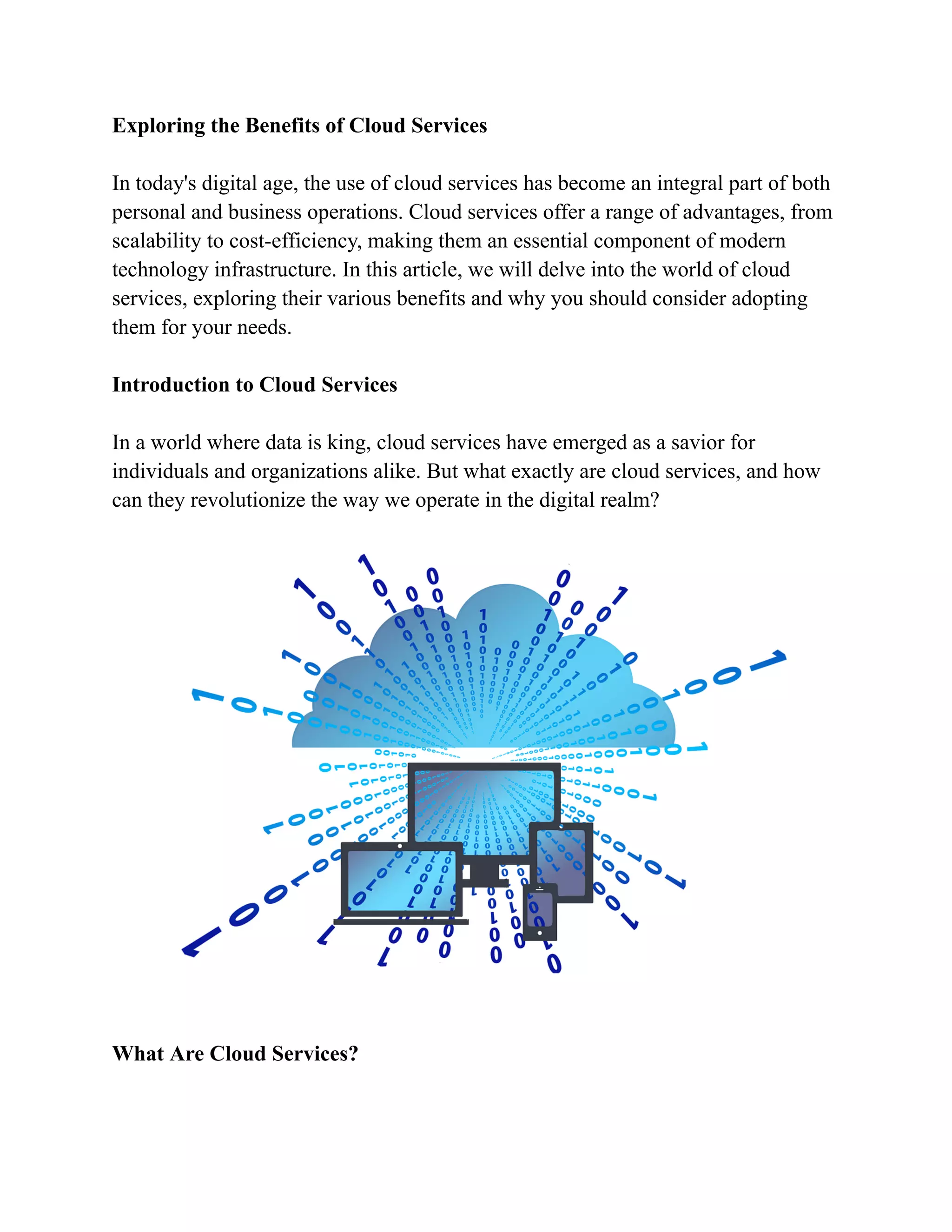 Cloud services have become essential in the digital age, offering benefits such as scalability, cost-efficiency, and disaster recovery. They encompass Infrastructure as a Service (IaaS), Platform as a Service (PaaS), and Software as a Service (SaaS), enabling users to access computing resources remotely. Despite their advantages, challenges like security concerns and the need for careful provider selection remain important considerations.