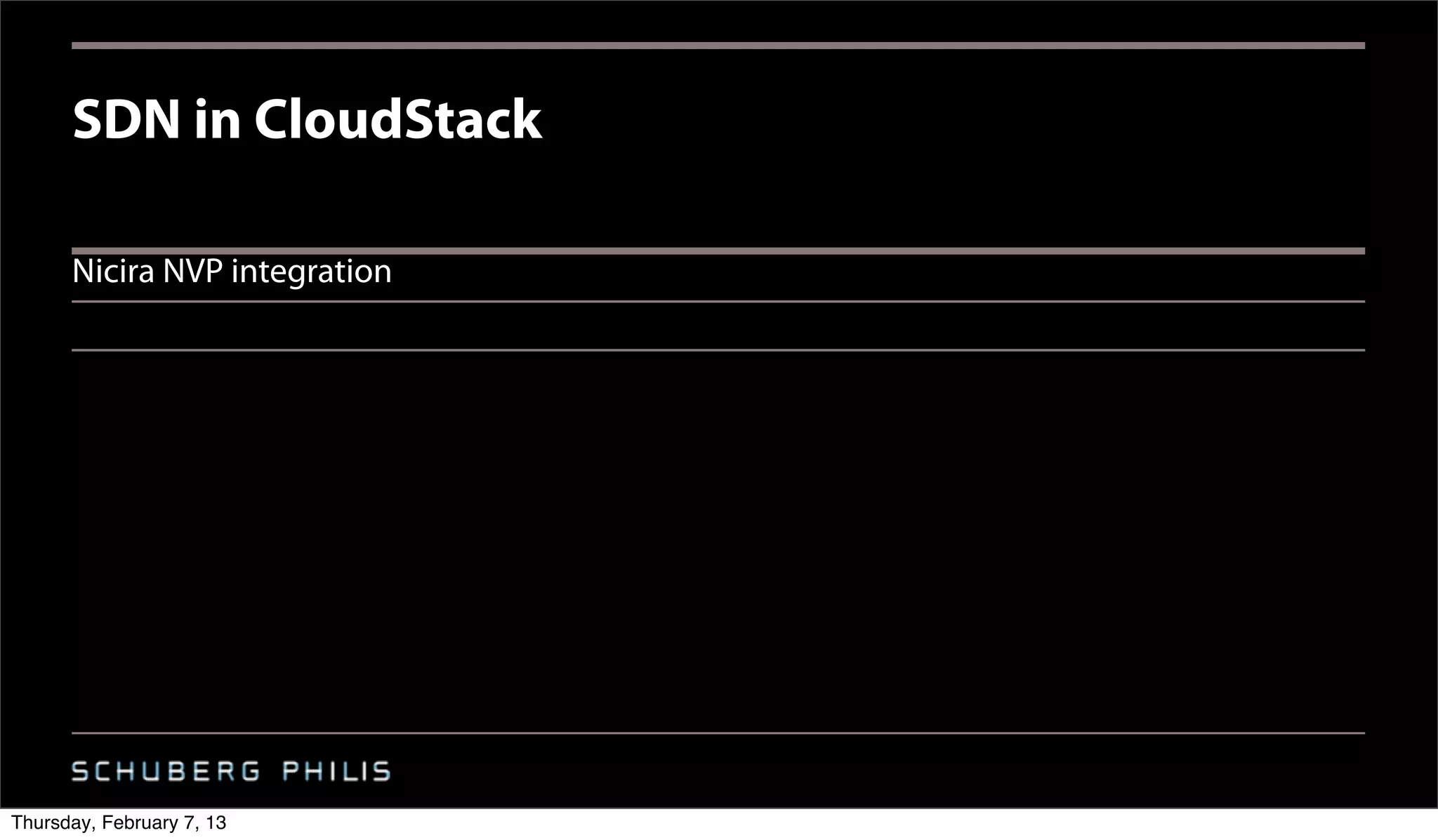 The document discusses the integration of Nicira NVP with CloudStack, highlighting the benefits of Software Defined Networking (SDN) for enhancing networking flexibility and scalability. It outlines a phased approach for implementing this integration, which includes configurations for Layer 2 and Layer 3 networking, and details how to provision networks and manage resources. Future plans include support for additional networking features and bridging networks.