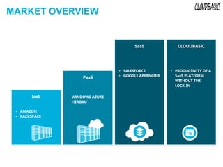 The document discusses CloudBasic, a platform that allows building, managing, and deploying multi-tenant and multi-cloud applications. It provides a high-level architecture that abstracts underlying infrastructure providers and allows applications to be deployed across IaaS, PaaS, and private clouds. Key features include hybrid cloud deployments with no code changes, a .NET-based platform, and the ability to customize applications per tenant. Technical challenges of multi-tenancy like scalability, performance, availability and security are addressed through CloudBasic's architecture and components.