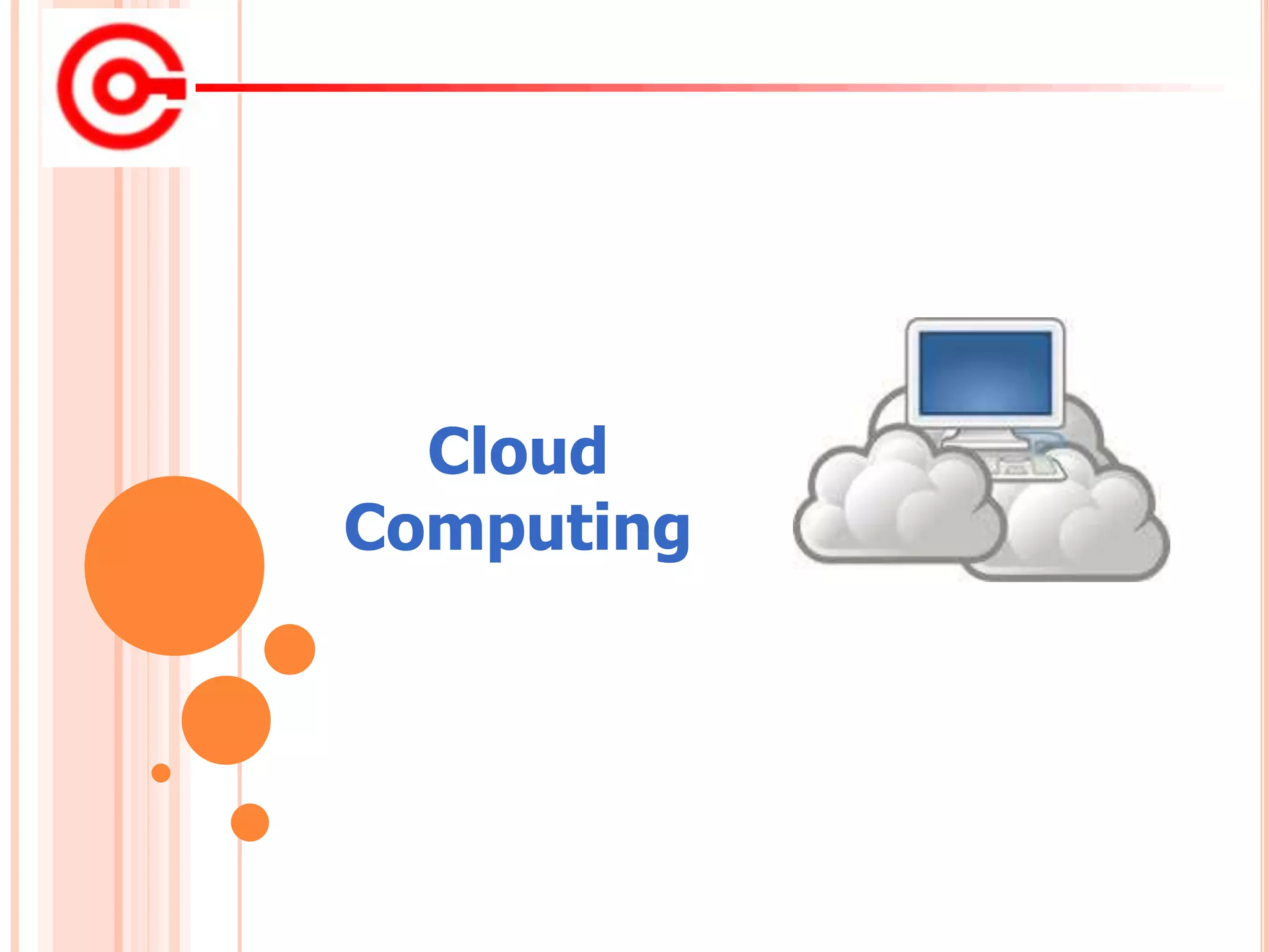The document provides an overview of cloud computing, including definitions, components, architecture, types (public, private, hybrid cloud), advantages and disadvantages. It defines cloud computing as utilizing shared computing resources and information delivered over the internet on an as-needed basis. The key components are front-end user interface and back-end cloud infrastructure. Architecture involves multiple cloud components communicating over APIs. Types of cloud include public, private and hybrid models. Advantages are flexibility, cost savings and scalability, while disadvantages include dependency on providers and potential security and privacy risks.