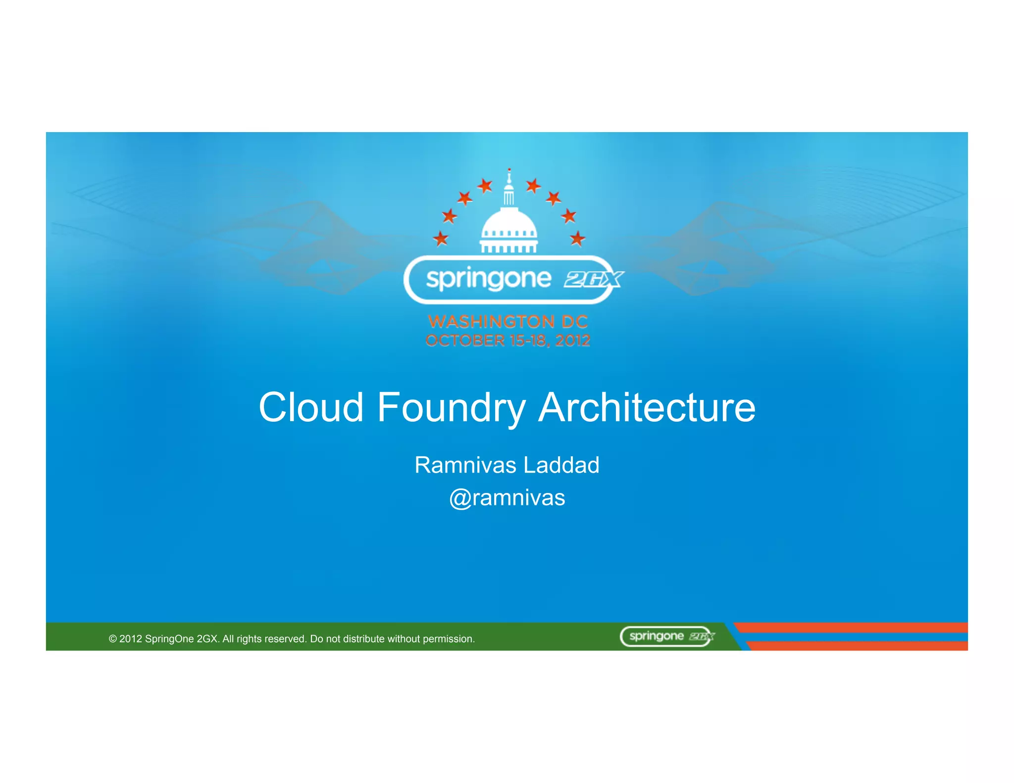Cloud Foundry is an open platform as a service (PaaS) that supports building, deploying, and scaling applications. It uses a loosely coupled, distributed architecture with no single point of failure. The core components include cloud controllers, stagers, routers, execution agents, and services that communicate asynchronously through messaging. This allows the components to be scaled independently and provides a self-healing system.