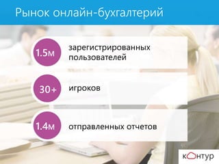 Документ описывает рынок онлайн-бухгалтерии в России и его развитие с 2005 года, отмечая рост числа пользователей и популярных онлайн-сервисов. Указывается, что 8% малых и средних бизнесов готовы переходить на облачные решения, упоминаются преимущества для стартапов и процессы, которые упрощаются благодаря онлайн-бухгалтерии. Также обсуждаются стратегии по оптимизации затрат и улучшению бизнес-процессов с помощью автоматизации.
