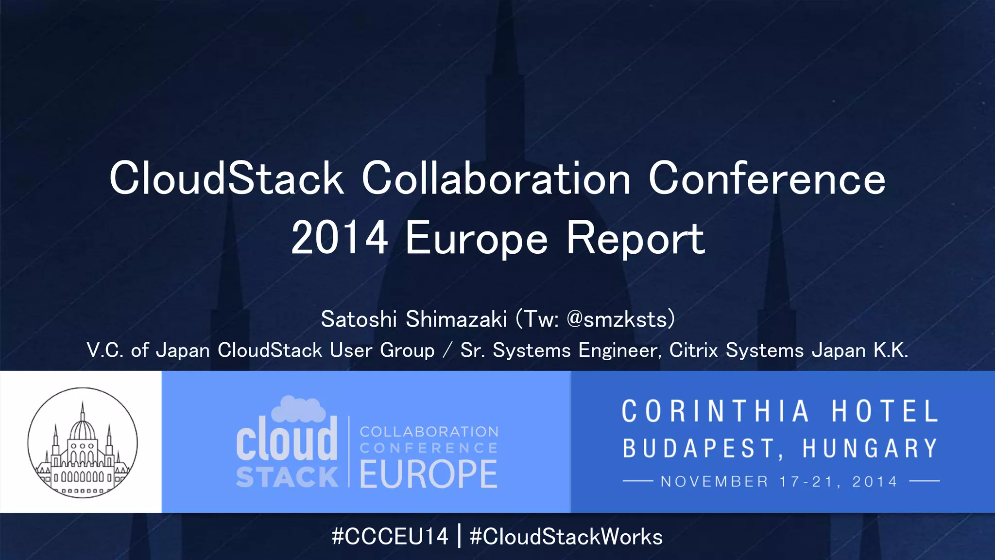The document summarizes the CloudStack Collaboration Conference Europe 2014 (CCCEU14) event. It provides details about the event including that it was held November 19-21, 2014 in Budapest, Hungary alongside ApacheCon. It describes the schedule over three days, which included tutorials on the first day, general sessions and panels on the second day, and breakout sessions and a poster session on the third day. Sessions covered topics like CloudStack development tools, integration with Chef, the CloudStack ecosystem, private/community cloud uses, storage, networking, and more.