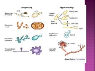 2. The fungi exist in both a mold form in soil and a pathogenic yeast form that can cause respiratory infection in humans and animals. Most infections are asymptomatic, but some can spread systemically.