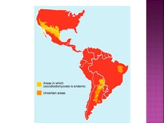1. Coccidioidomycosis is a fungal infection caused by inhalation of spores from Coccidioides immitis or C. posadasii, dimorphic fungi found in certain parts of the Americas.