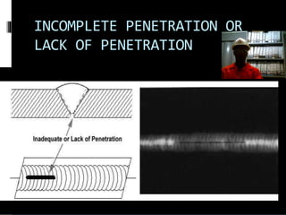 This document lists and defines various welding defects such as porosity, incomplete penetration, slag inclusions, undercut, and cracks. It also discusses ASME Section V requirements for radiation energy density during welding to meet image quality standards. Slag inclusions are further defined as elongated or isolated, with size thresholds provided above which they are considered defects.