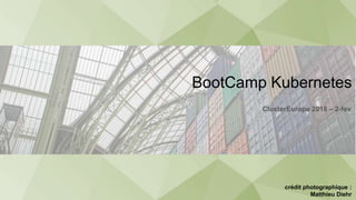 The document outlines the agenda for a Kubernetes bootcamp being held by ClusterEurope 2018. The morning session will cover Docker fundamentals and deploying a LAMP application using Docker, Minikube, and Helm. The afternoon session will cover additional Kubernetes features like namespaces, persistent volumes, secrets, auto-scaling, ingress, and liveness probes. It will also include a demonstration of serverless technologies using OpenFaaS. Pre-requisites for attendees include a Google account, Git, Minikube, Kubectl, and various code editors. The event is sponsored and will have help available from experienced SRE and cloud architects.