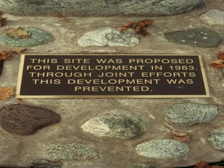 The document discusses sustainable development and its significance, emphasizing the balance between current and future needs amid climate change and infrastructure challenges. It highlights the moral and regulatory imperatives for sustainability, the negative impact of unsustainable land use, and shifting demographics affecting community structures. The key to successful communities lies in building a vision based on local assets, promoting community character, and embracing inclusive leadership and partnerships.