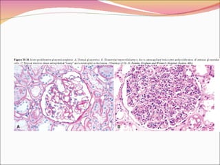 The document discusses various types of glomerular and tubulointerstitial diseases: