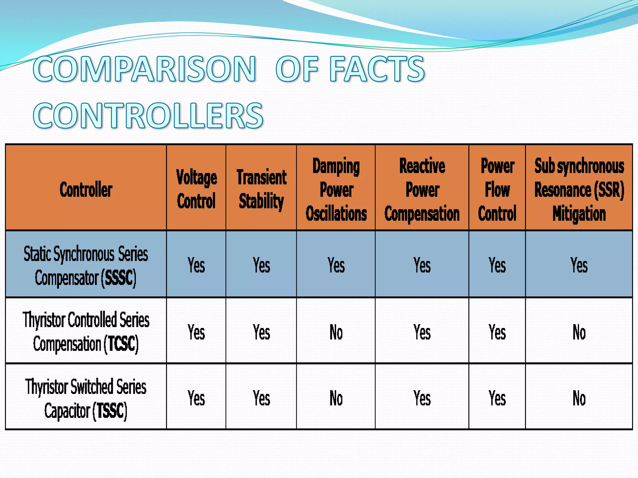 1. The document discusses a static synchronous series compensator (SSSC), a type of flexible AC transmission system (FACTS) device that controls electric power flow by injecting a controlled voltage in series with a transmission line.