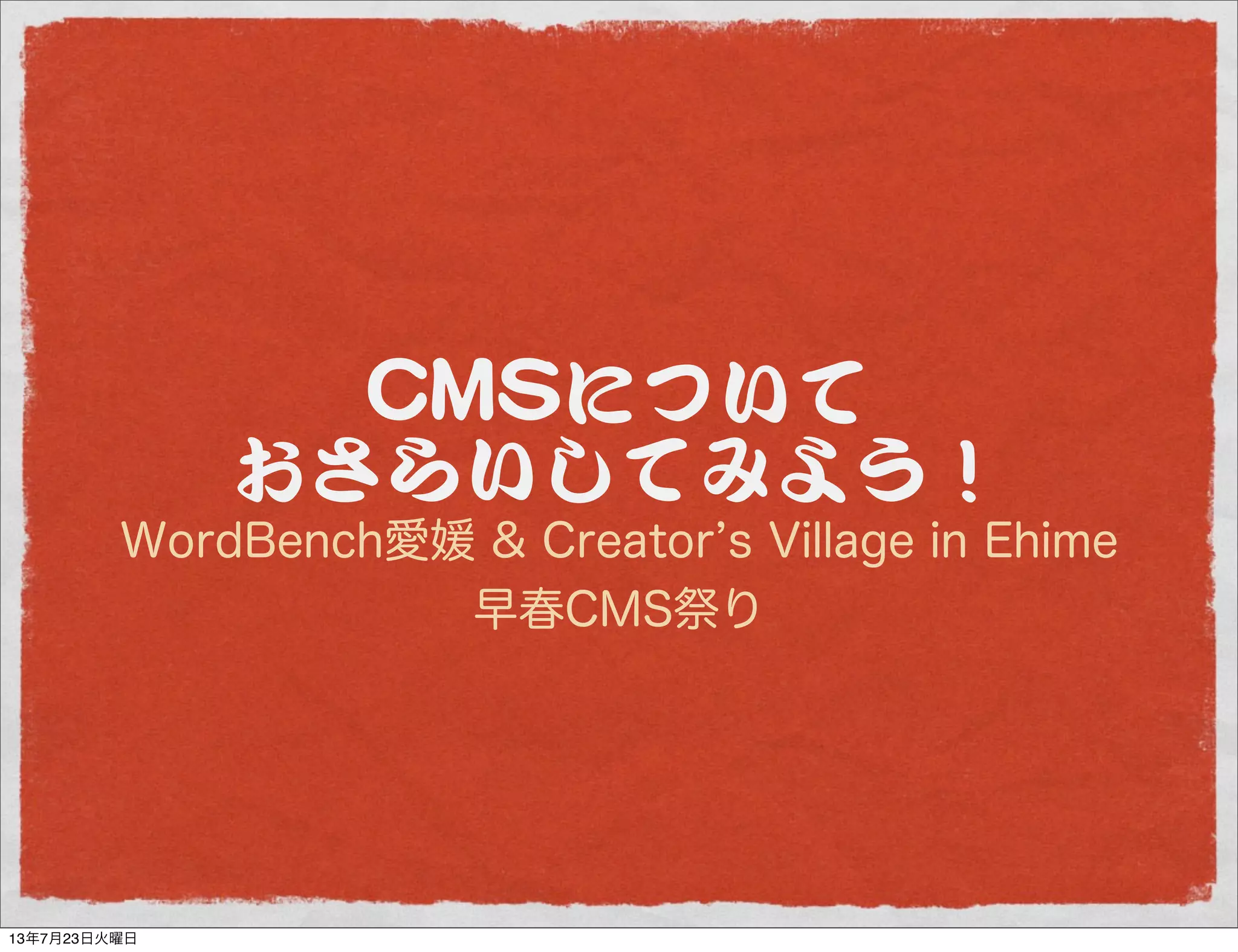 今日のお話 CMSってなんだろう? どんなCMSがあるんだろう? 13年7月23日火曜日