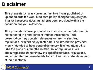 This document summarizes the requirements of the Emergency Preparedness Final Rule for Medicare and Medicaid participating providers and suppliers. It discusses the four key provisions that all provider types must have: risk assessment and planning, policies and procedures, communication plans, and training and testing. It provides definitions of terms and outlines that all facilities must be compliant with training and testing exercises, including an initial full-scale community exercise, by November 15, 2017. Questions from participants are then answered.