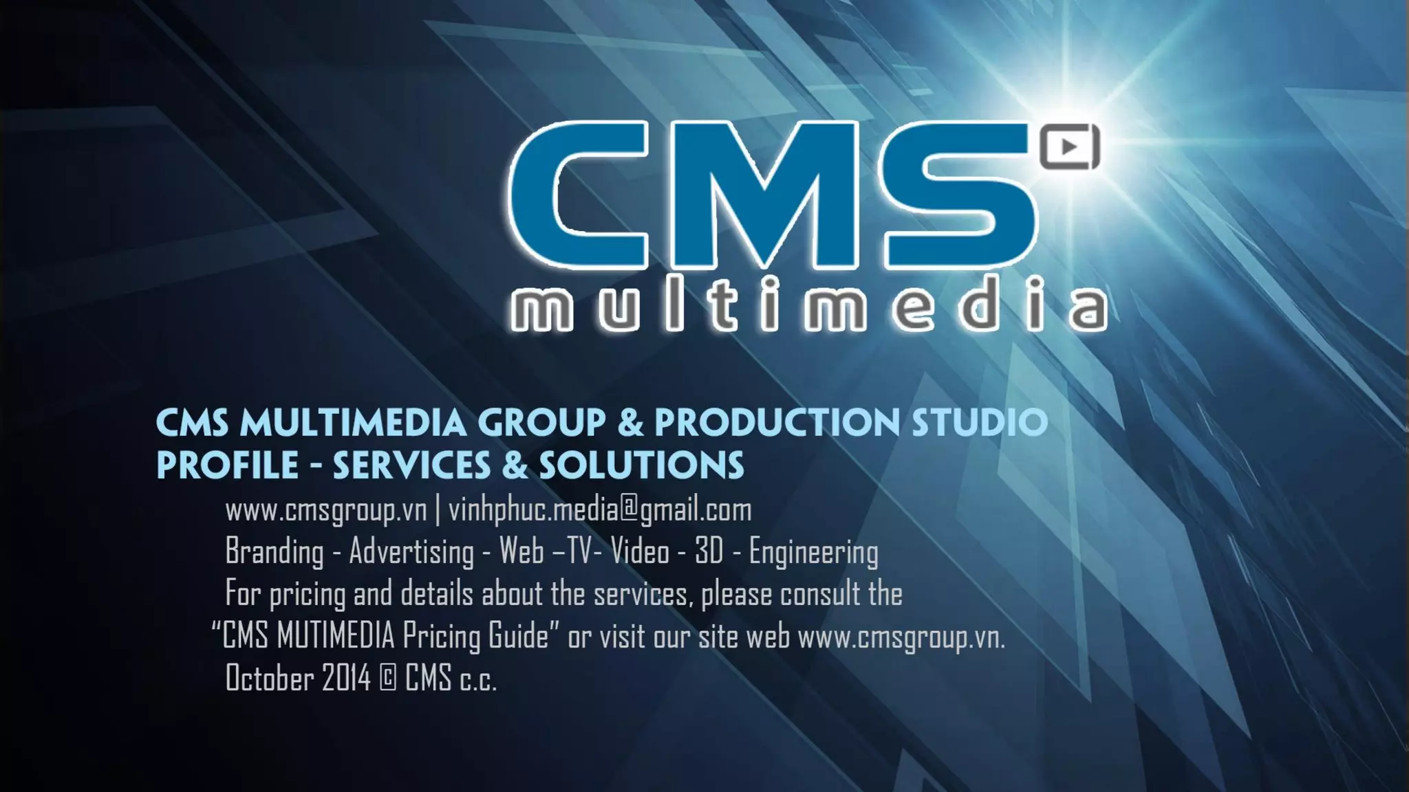 This document outlines the services provided by a media corporation based in Vietnam, including branding and design, web and interactive media, television advertising and video production, and animation. The company's mission is to promote the best of Vietnam and bring international standards to the Vietnamese media industry. It prides itself on treating employees like family and maintaining high quality and transparency.