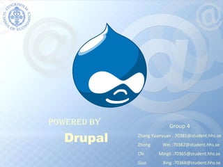 Drupal is an open-source content management system founded in 2001. It has over 3.5 million registered members in 40 languages and over 1,400 developers contributing to its core and modules. Drupal differentiates itself through its large, dedicated community and granular user permissions. Its strategy is to position itself as a standard, customizable product for intermediate-level websites through cooperation with partners.