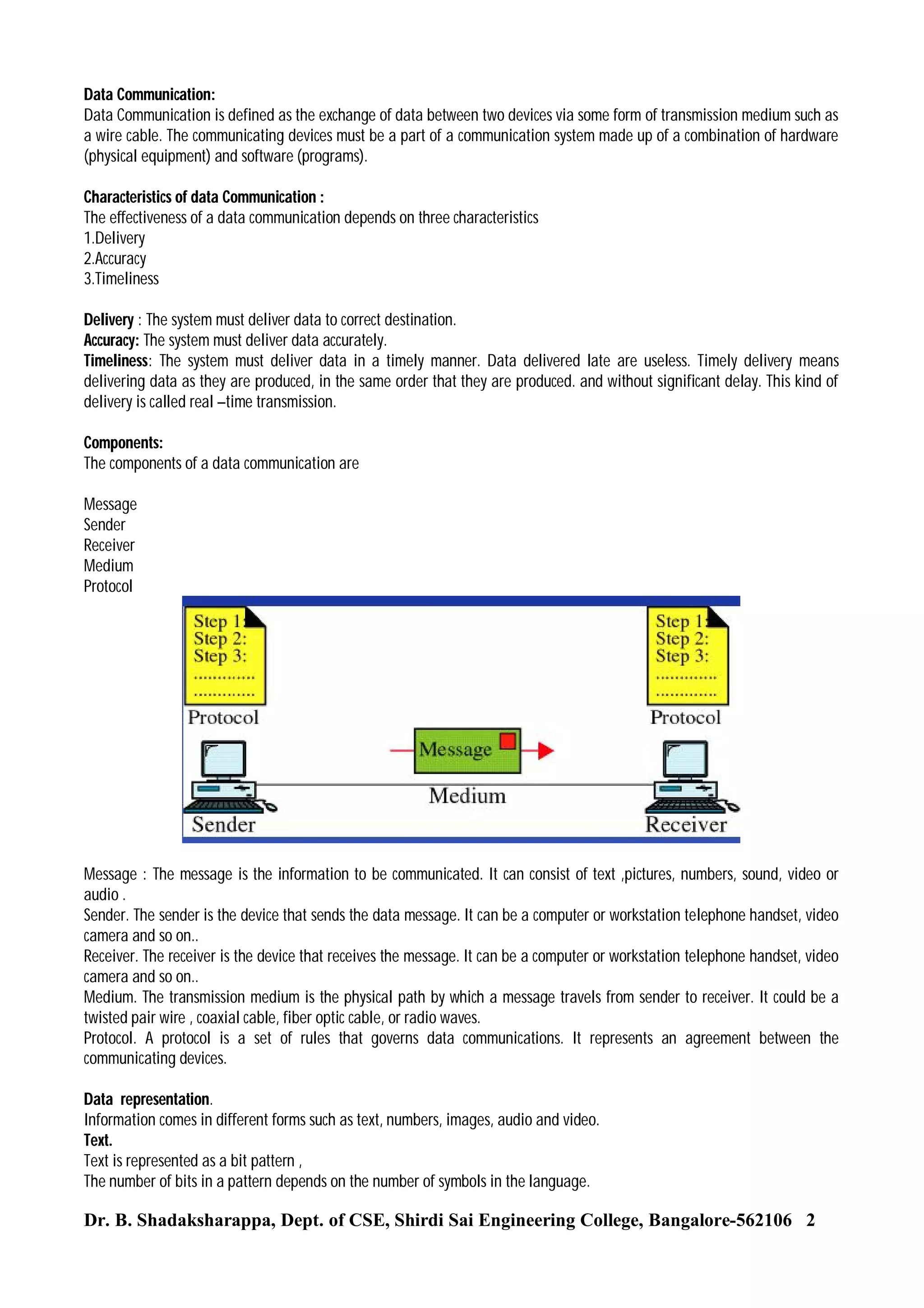 This document provides an overview of data communications and computer networks. It discusses the need for computer communication over distances, defines data communication, and describes the key components and characteristics of data communication systems. It also covers various data representation methods, transmission media, network topologies, categories of networks including LANs, MANs and WANs, and the importance of protocols and standards in networking.