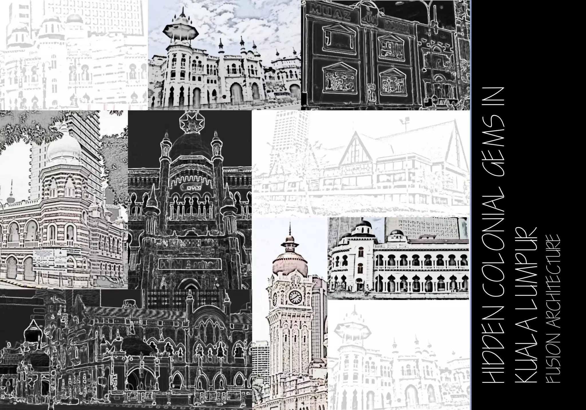 The document discusses examples of colonial architecture in Kuala Lumpur that showcase fusion of different styles. It describes 7 historical buildings in the city and their architectural features, which blend elements of Moorish, Mughal, Neoclassical and British colonial styles. The buildings highlighted include the Malayan Railway Administration Building, KL Railway Station, National Textile Museum, Sultan Abdul Samad Building, Royal Selangor Club, DBKL City Theatre, and the buildings along Jalan Tuanku Abdul Rahman. Arches, domes, minarets and other ornate design elements reflect the mixing of Islamic, Indian and Western influences on Malaysian colonial architecture.