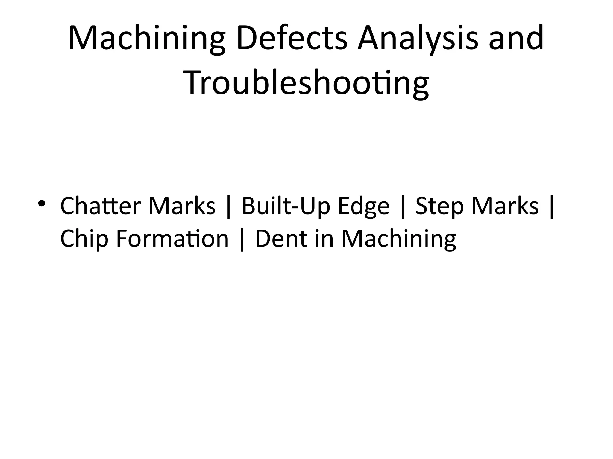 Machining Defects Analysisand Troubleshooting • Chatter Marks | Built-Up Edge | Step Marks | Chip Formation | Dent in Machining