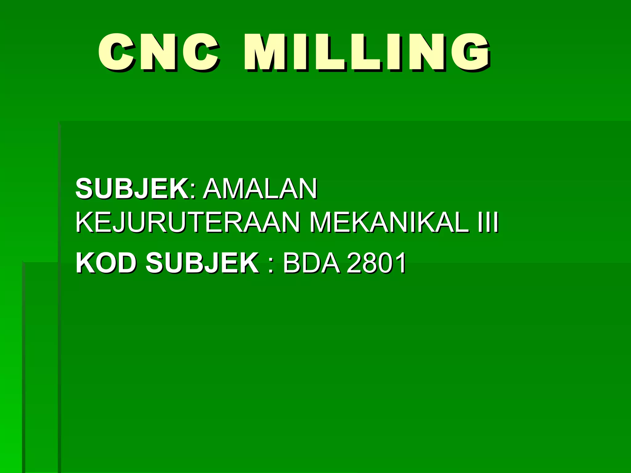 This document provides information about CNC milling. It discusses learning outcomes, introduces milling processes and classifications. It describes the theory of CNC milling machines, including their characteristics, geometry, coordinate systems, zero and reference points, and programming structure. It also covers cutting values, clamping devices, and lists G-codes and M-functions.