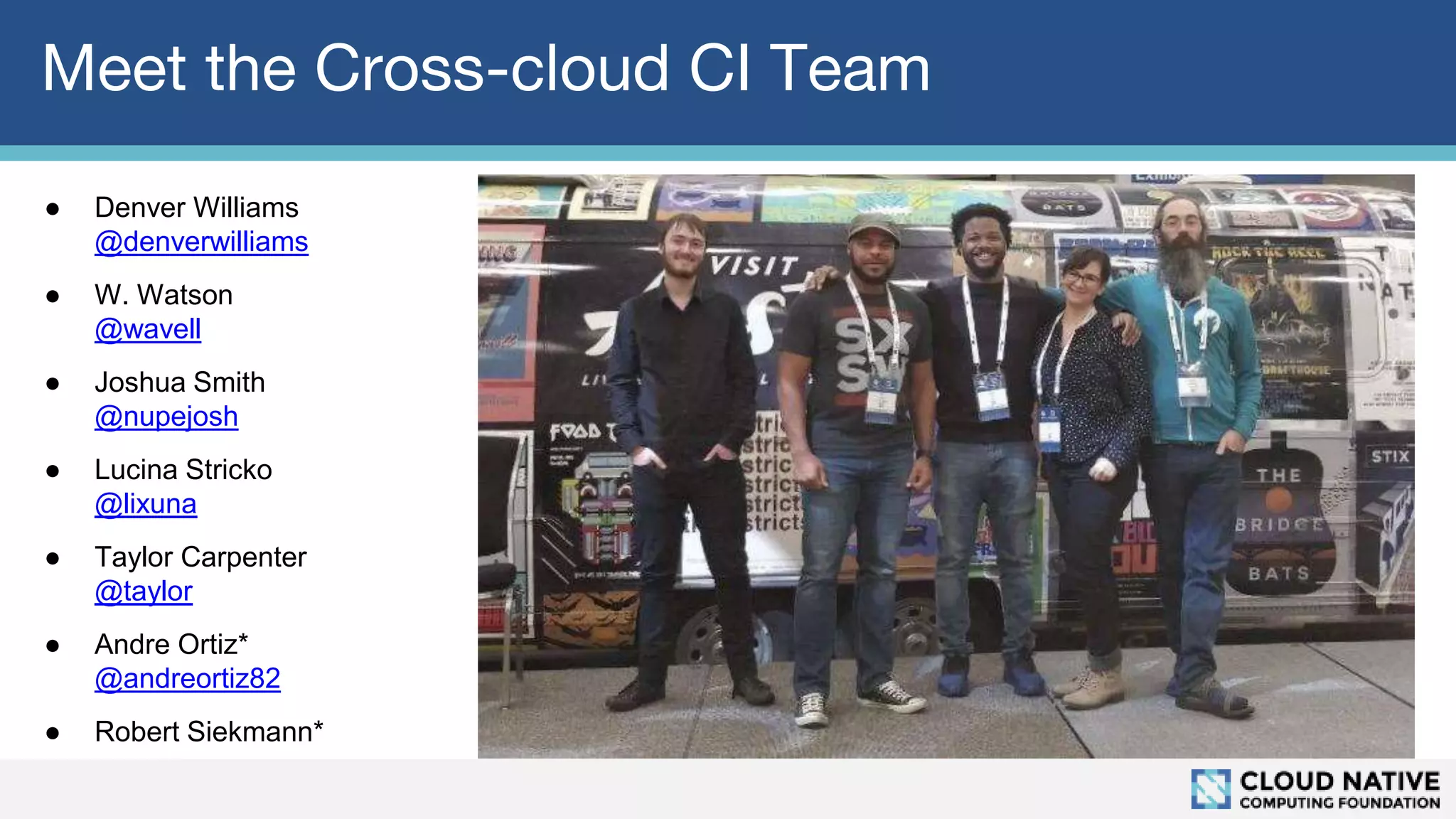The document discusses the Cross-Cloud CI project, which aims to validate the interoperability of cloud-native technologies across various cloud providers. It details the functionalities of the Continuous Integration (CI) system and its status dashboard, showcasing features like build status, cloud provisioning, and app deployments. Upcoming releases and collaborations are also highlighted, along with planned events related to the project.