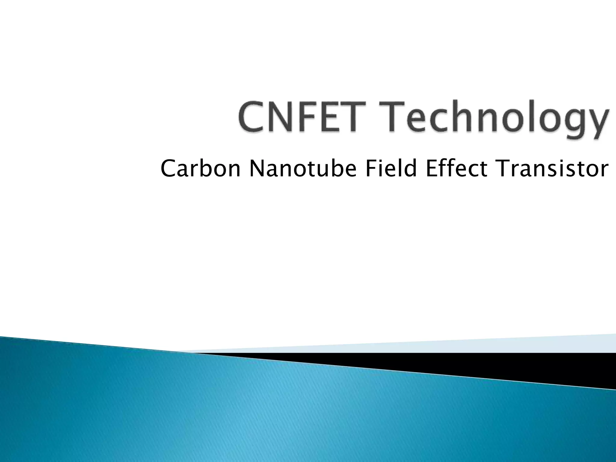 The document summarizes carbon nanotube field effect transistors (CNFETs). It discusses how CNFETs offer advantages over traditional MOSFETs such as ballistic transport, high drive current, temperature resilience, and low capacitance. However, large-scale manufacturing of CNFETs poses challenges and circuit performance can only be estimated through simulations currently. The document also describes the structure, properties, types and performance of CNFETs. It analyzes how CNFET design can overcome issues facing MOSFET scaling like leakage and process variation.