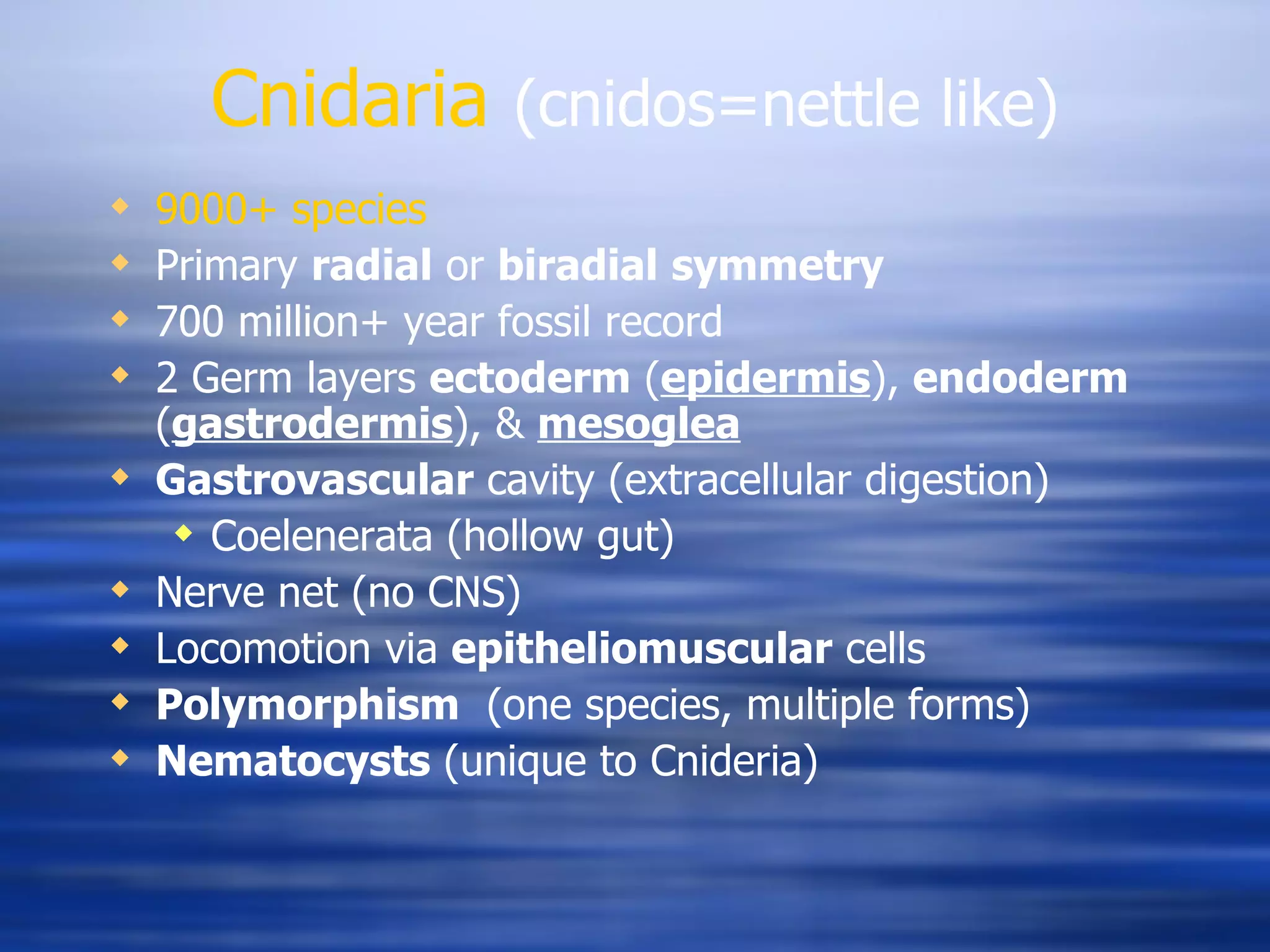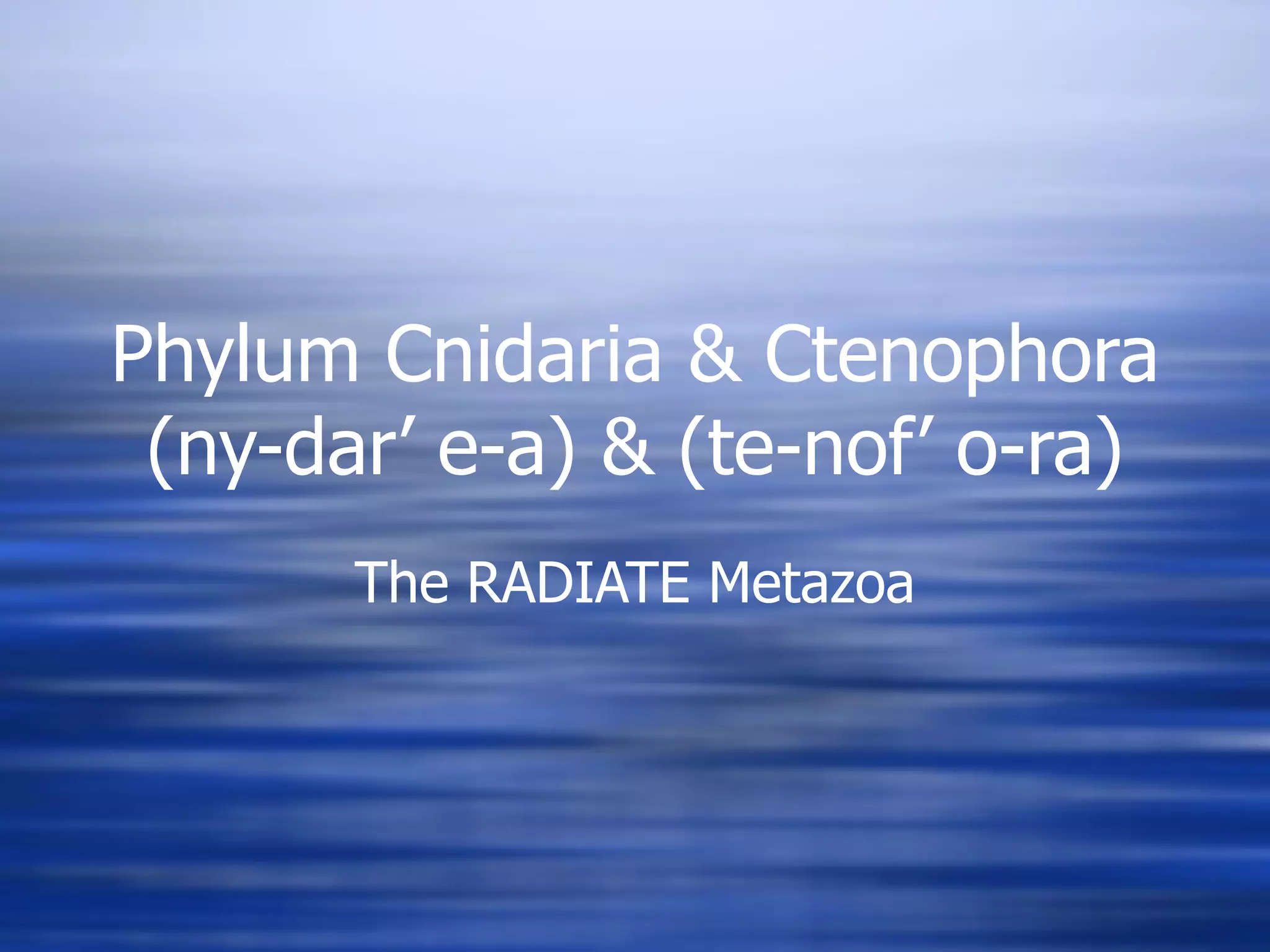 Phylum Cnidaria includes jellyfish, sea anemones, corals and hydroids. They have radial or biradial symmetry, nerve nets, and use nematocysts for defense and prey capture. Their life cycles often involve both polyp and medusa stages. Phylum Ctenophora includes comb jellies which have colloblasts for prey capture and comb rows for swimming. They lack nematocysts and a polyp stage.