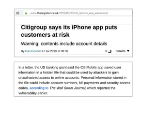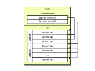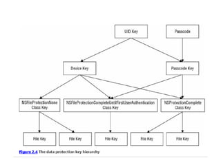 The document provides an overview of security features in iOS apps, covering the Data Protection API, keychain protection classes, and Touch ID mechanisms. It also discusses reverse engineering of iOS binaries, including the structure of Mach-O files, security features like position-independent executable, and techniques for decrypting app store binaries. Additionally, tools for inspecting and analyzing decrypted applications are mentioned.