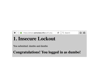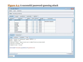 Chapter 6 discusses various security vulnerabilities in web application authentication methods, highlighting the risks associated with username and password systems as well as the importance of two-factor authentication. It covers common attack vectors such as brute-force attacks, insecure password reset mechanisms, and information leakage during login processes. Recommendations for securing authentication include strong password policies, proper validation of user inputs, and secure transmission and storage of credentials.
